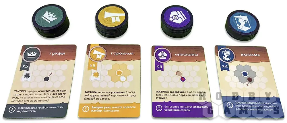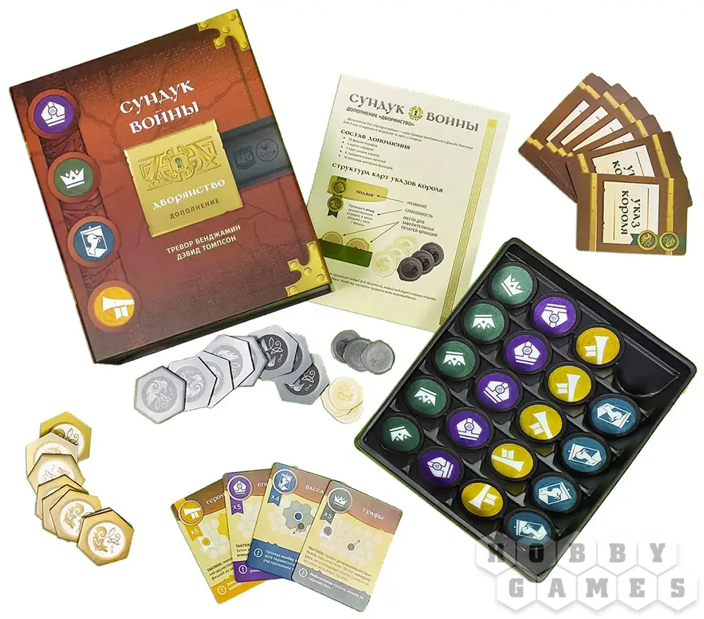 Дополнение "Дворянство" добавляет в настольную стратегию "Сундук войны" новые отряды и механики: теперь вы можете отправлять в бой элитные отряды дворян, а также пресекать смуту в их рядах при помощи королевских указов и увещеваний епископов. Дополнение отлично сочетается не только с базовой игрой, но и со вторым дополнением – "Осада".