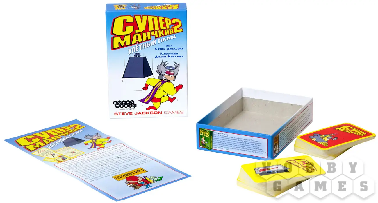 "Улётный плащ" предлагает вам 110 новых карт для "Суперманчкина", а конкретнее – 65 карт дверей и 45 карт сокровищ. Среди больших новинок – новый класс Умник. У него всего одно свойство, но очень приятное: у монстров не бывает особых свойств или бонусов против Умников! Также дополнение привносит новый вид Шмоток – плащи. А так как мы настоящие манчкины, то плащей сможем напялить на себя сколько угодно много…