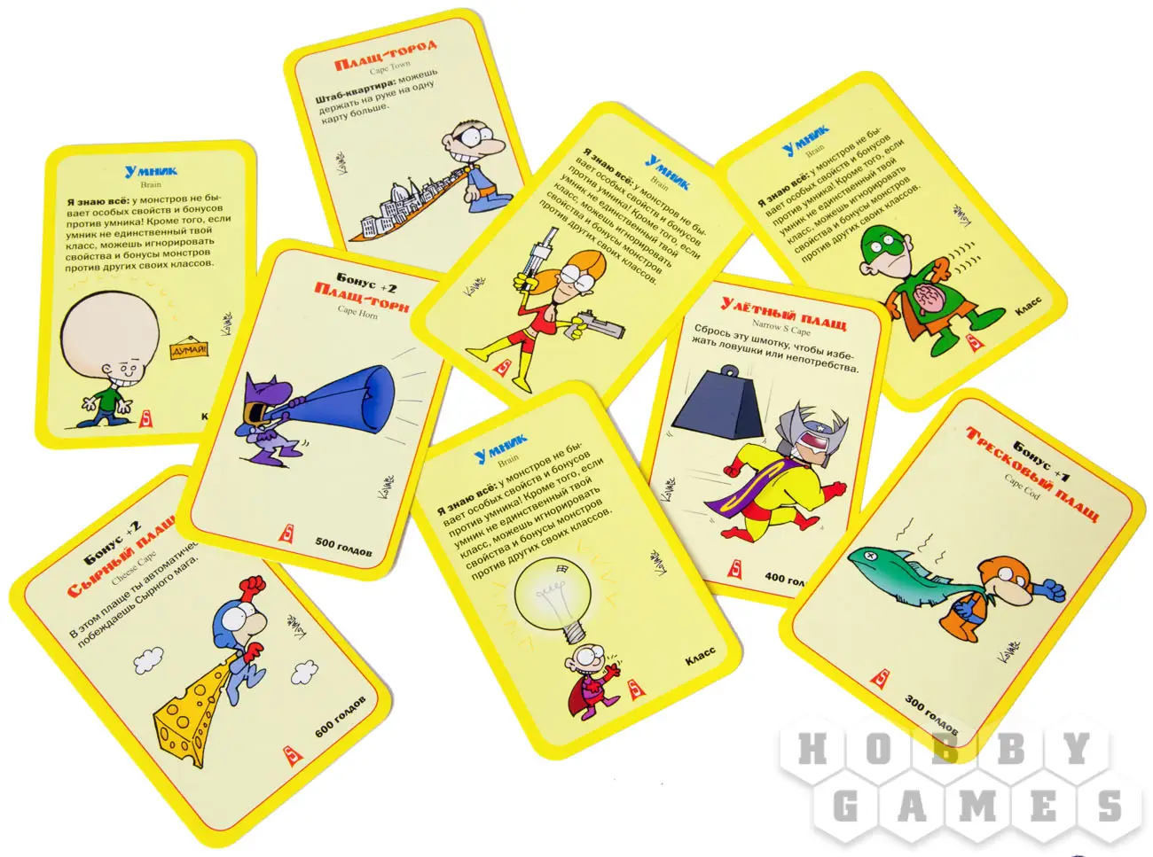 Прежде всего, это целая кипа новых монстров (вас точно порадует Взрывнюк), шмоток (спешите опробовать Швабру и вымести ей всю преступность из города) и событий. Помимо этого, Вас ждут 4 новых класса: Мистик, управляющий кубиком и собственной смертью; Экзот, находящий силы в монстрах; Мутант, управляющий Силами и Технарь, отлично шарящий в Шмотках. Также в игре появляются несколько новых типов карт: прежде всего, это карты Силы, которые дают Вам уникальные способности, но, чтобы ими пользоваться, нужно накопить достаточности мощности, а также карты штаб-квартир. В игре нет рас, но Героям они и не нужны, не так ли?