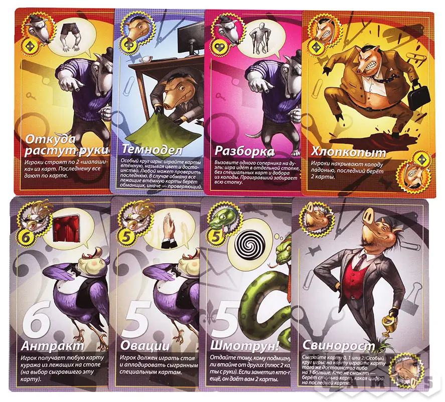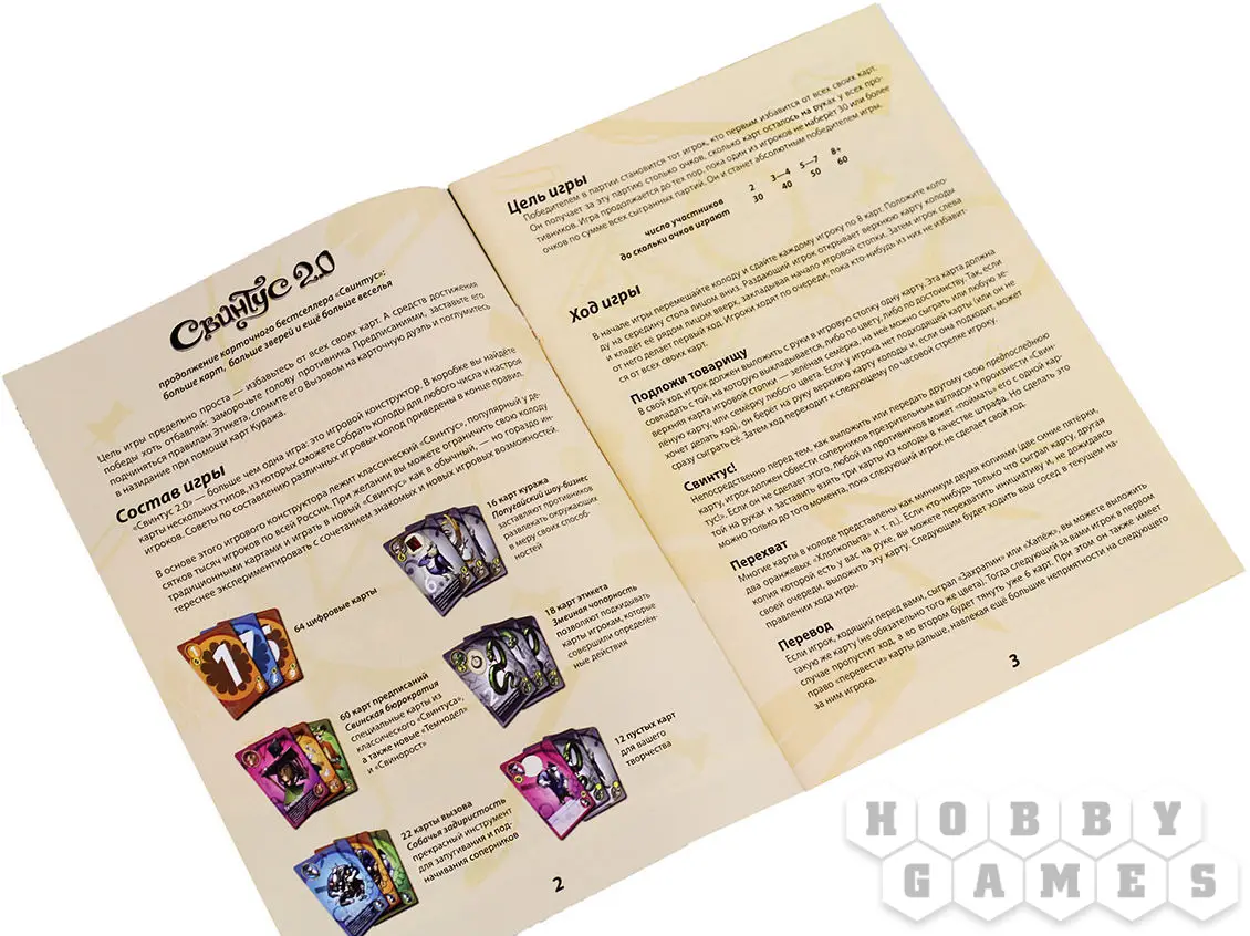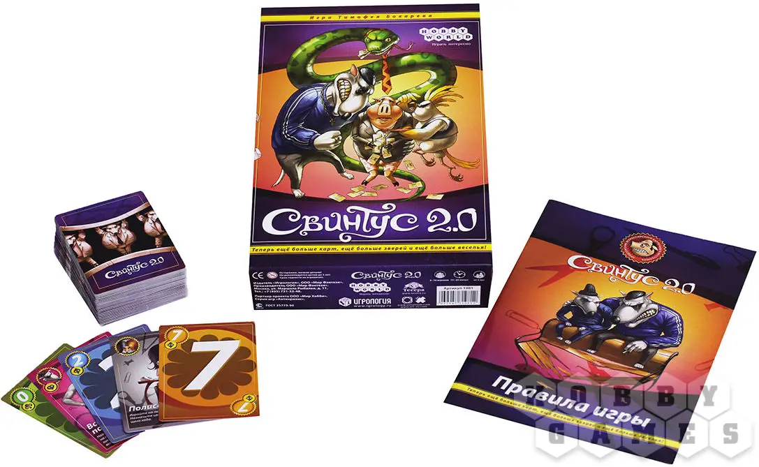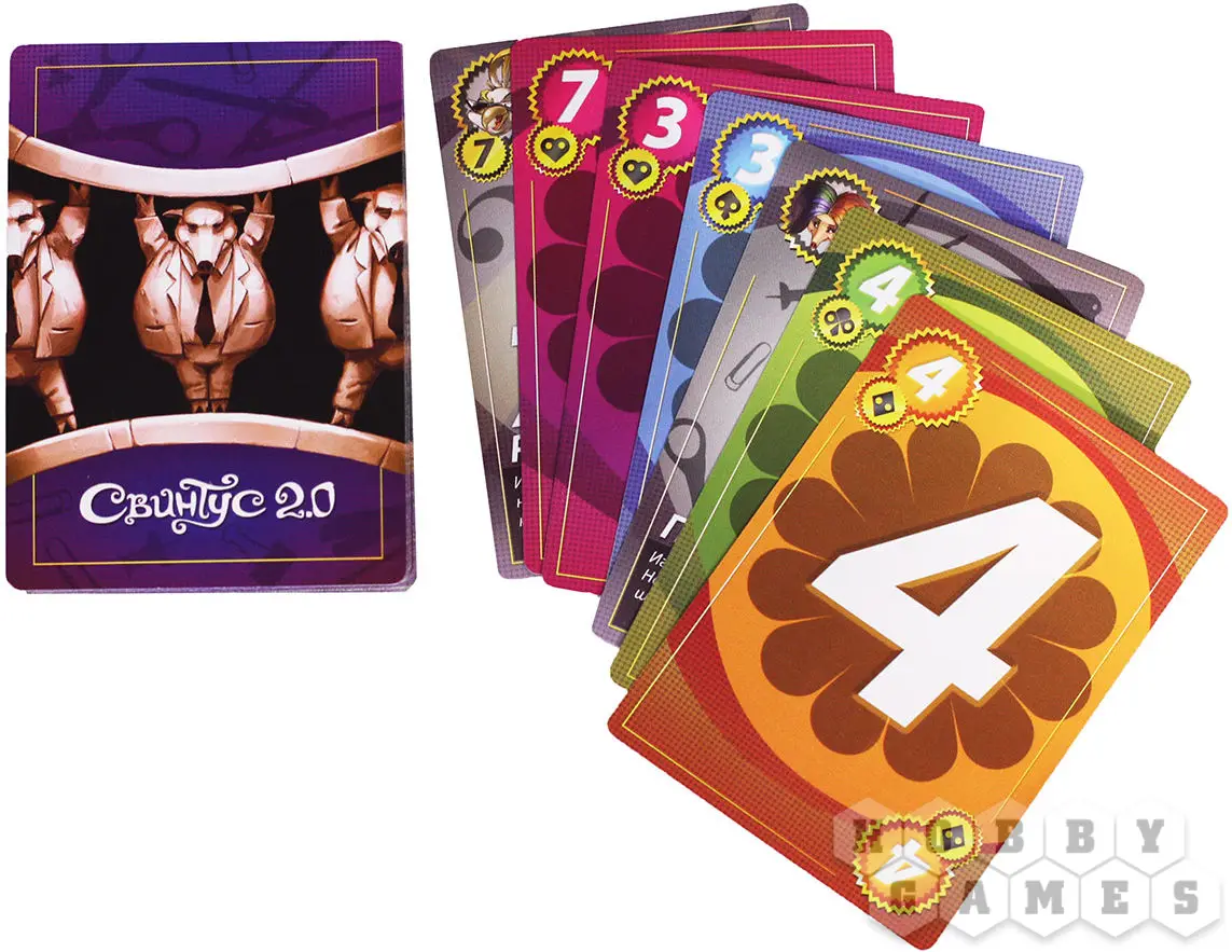 «Свинтус 2.0» – это расширенное издание, основанное на игре «Свинтус», завоевавшей популярность благодаря динамичности и простоте условий. Все, что необходимо участникам, – хорошо запомнить правила и вовремя реагировать на ходы соперников.
