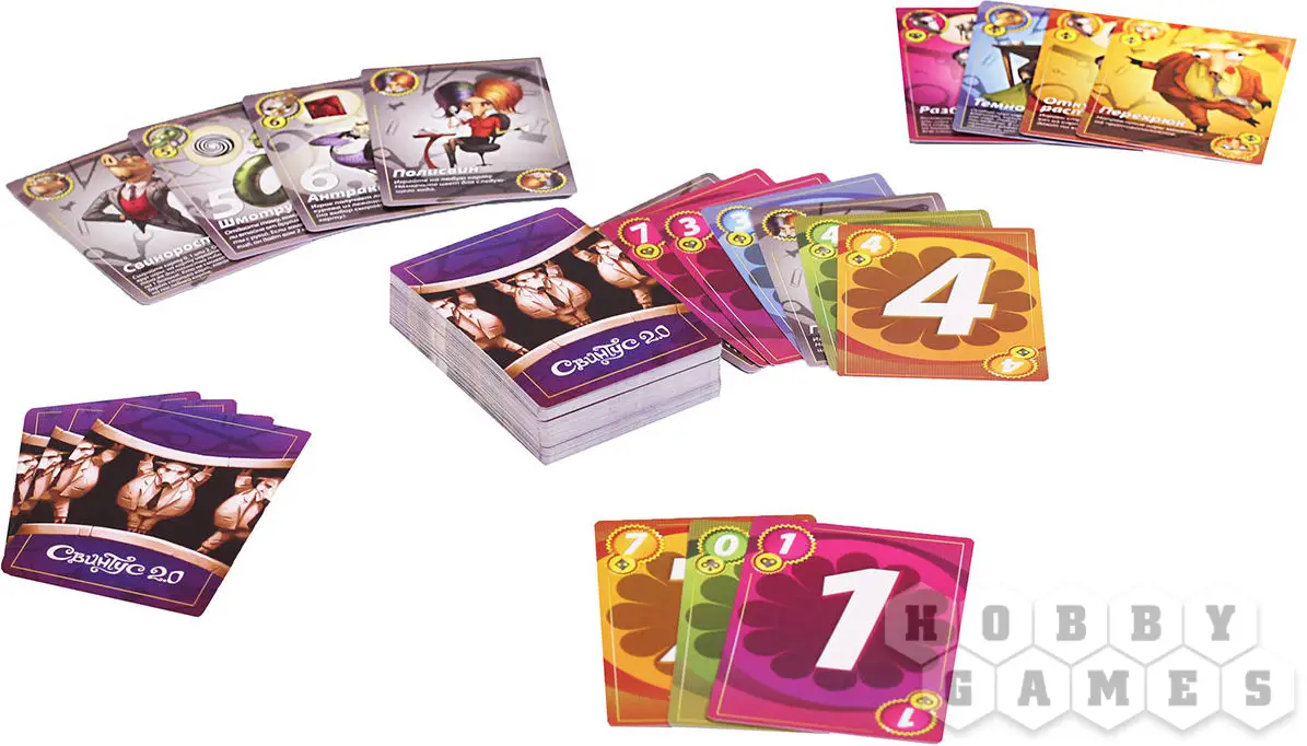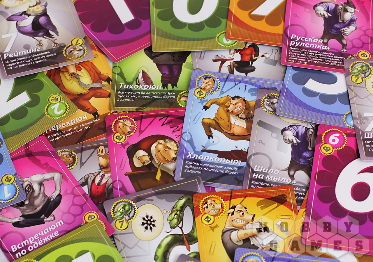 В «Свинтус 2.0» могут играть от 2 до 10 человек, однако игра дает возможность подобрать колоду под любое количество игроков. Вы, конечно, можете ограничиться условиями классической версии, но процесс будет гораздо увлекательнее, если Вы попробуете все возможности, которые предложили разработчики.