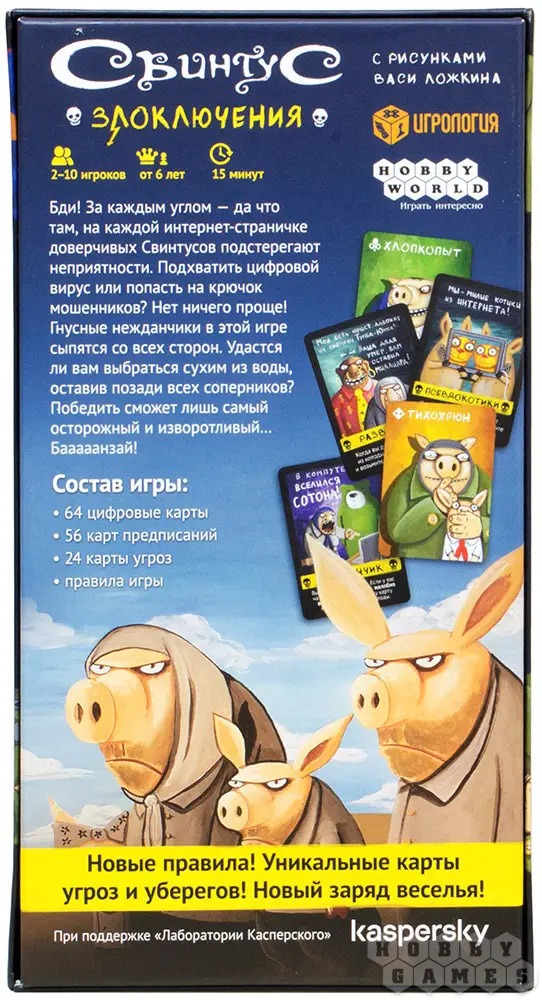 Главной темой новой игры стали сетевые опасности, а Вася Ложкин подарил игре невероятные иллюстрации карт, создав новый мир для любимых всеми свинтусов.