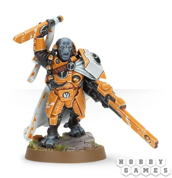 Модель Огненного Клинка привнесет в вашу коллецию Тау дополнительный динамизм и новые детали. Эта проработанная миниатюра одета в уникальную боевую броню, расписанную символами Тау. Выражая триумф, одной рукой она поднимает клинок, другой рукой сжимает пульсовую винтовку с подсветкой цели. Фигура расположена на скульптурной подставке, отображающей разрушенное здание, облачена в развевающийся плащ, ее длинные волосы собраны несколькими застежками в хвосты.
