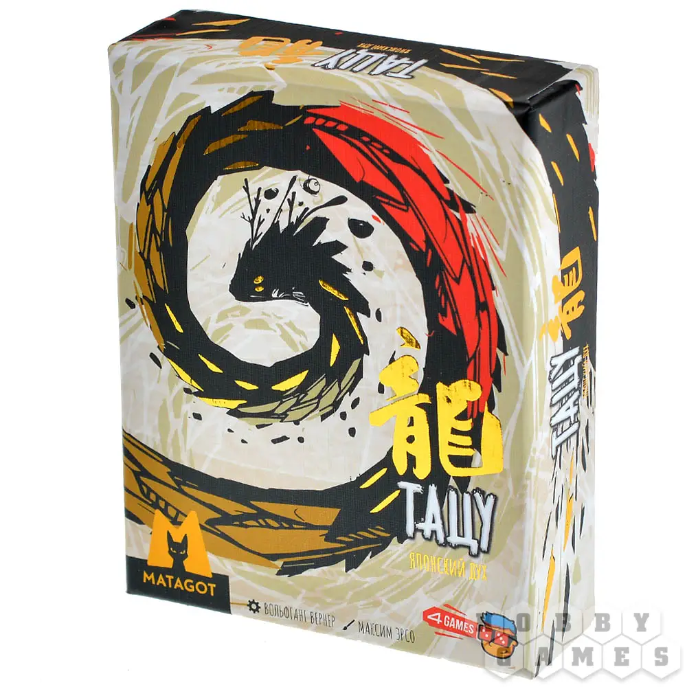"Тацу" – это карточная игра со взятками. Её цель – сделать так, чтобы ваша команда набрала 500 победных очков. Для этого вы будете разыгрывать карты духов, которые отличаются друг от друга по силе, и комбинировать их с картами слияния и множителя, чтобы ещё сильнее приблизиться к победе. Сможете ли вы принести своему клану славу, которую он заслуживает?
