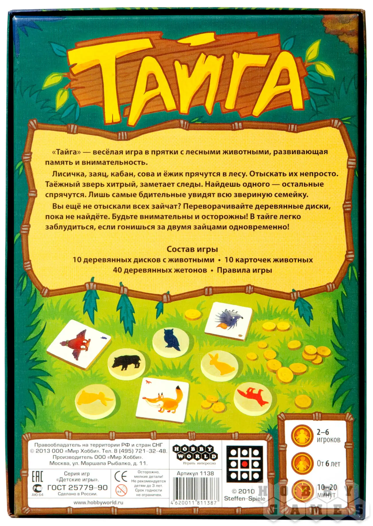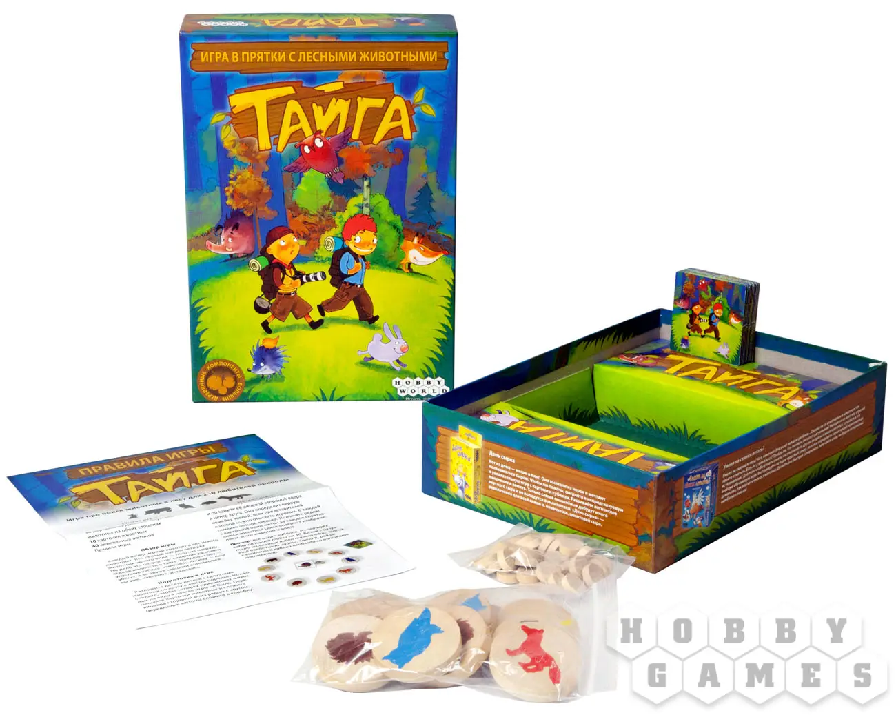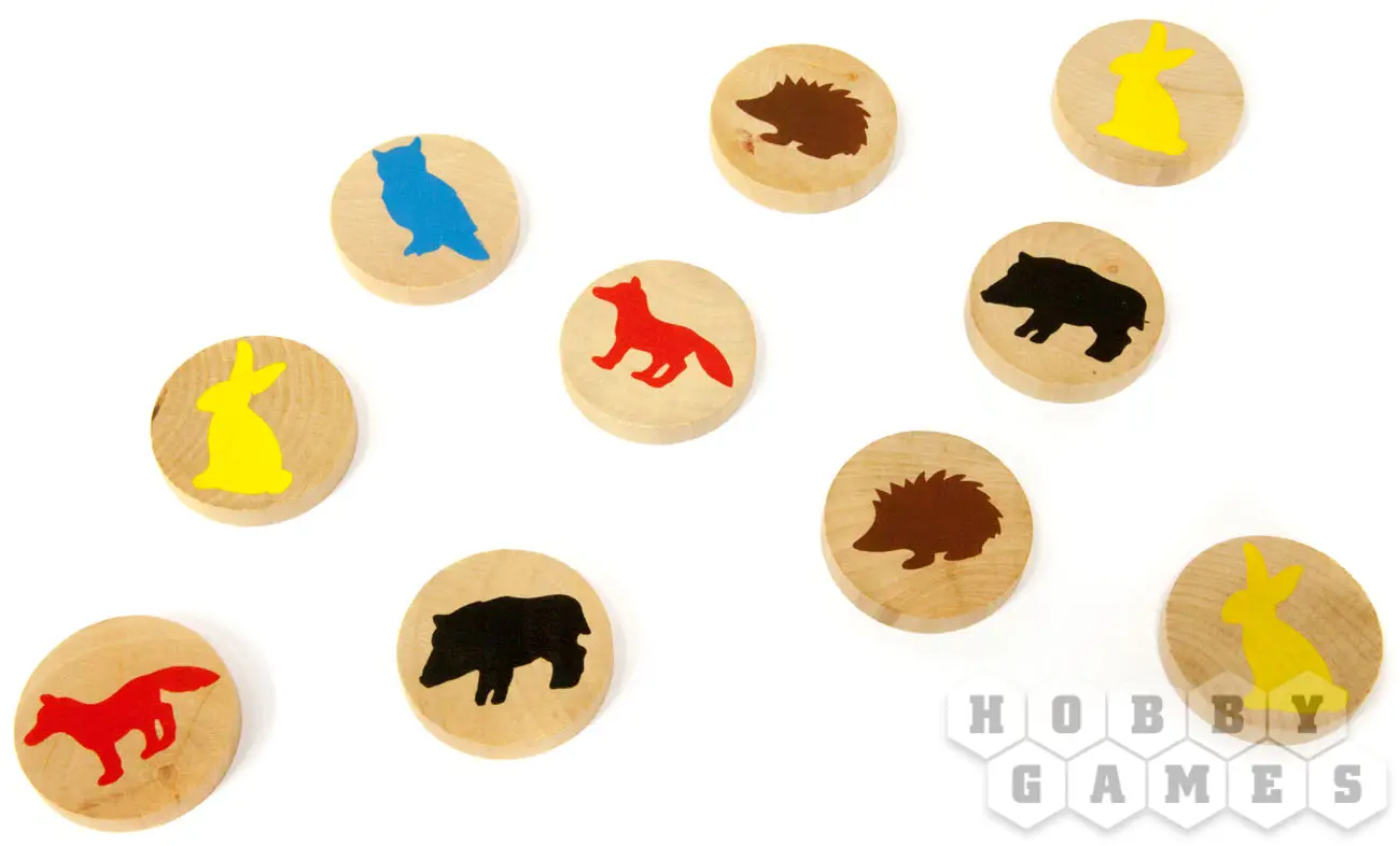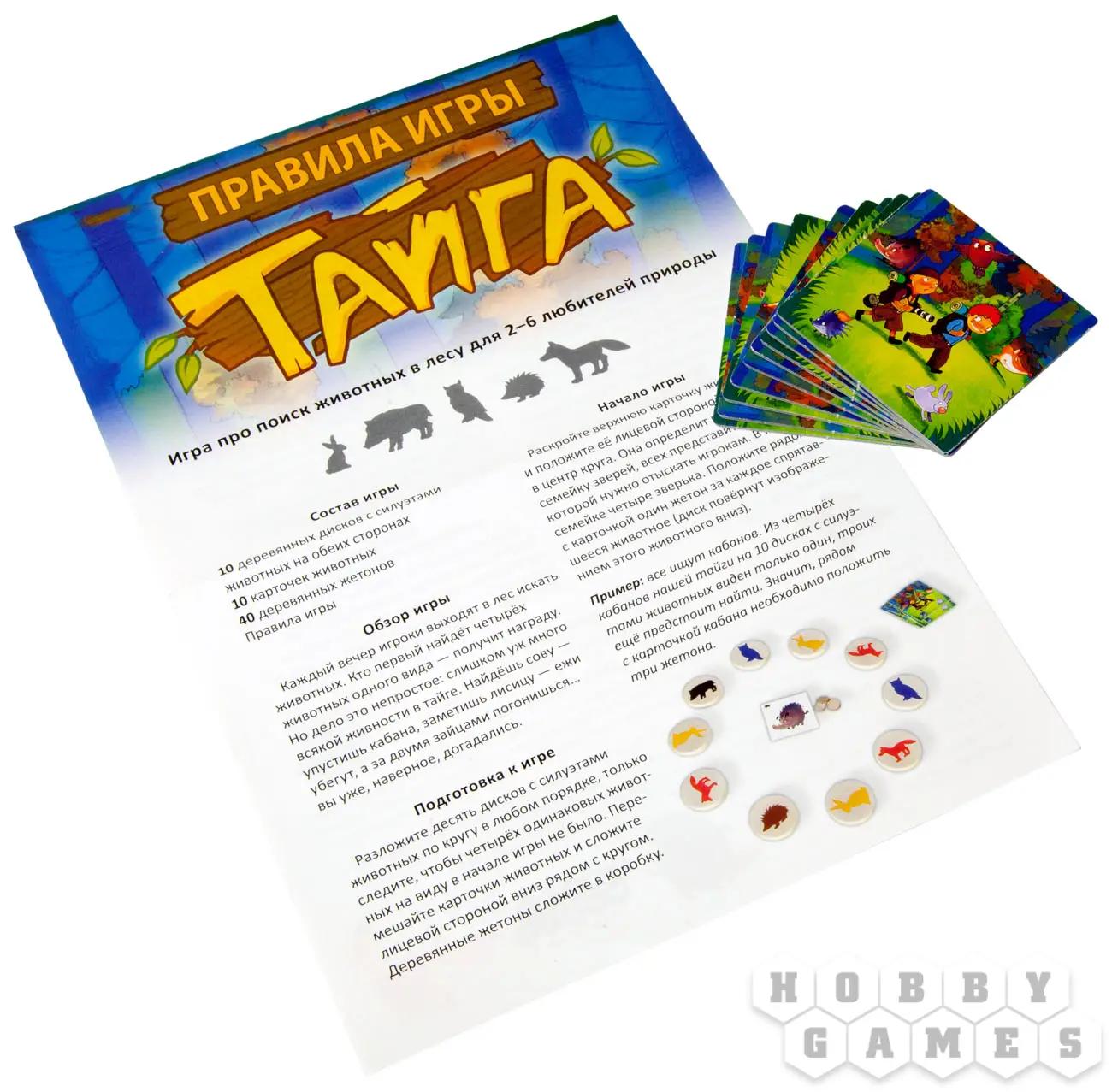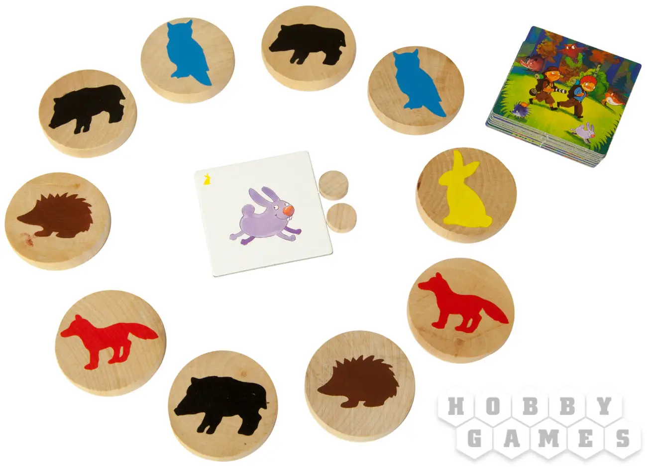 В настольной игре «Тайга» надо отыскать в лесу целую звериную семейку. Но отыскать зайцев, лисичек, кабанов, сов и ежиков очень непросто. Таежный зверь хорошо умеет заметать следы. Только самые бдительные увидят целую семейку. Еще не отыскали каждого из зайчат? Ищите, переворачивая деревянные диски, пока не найдете.