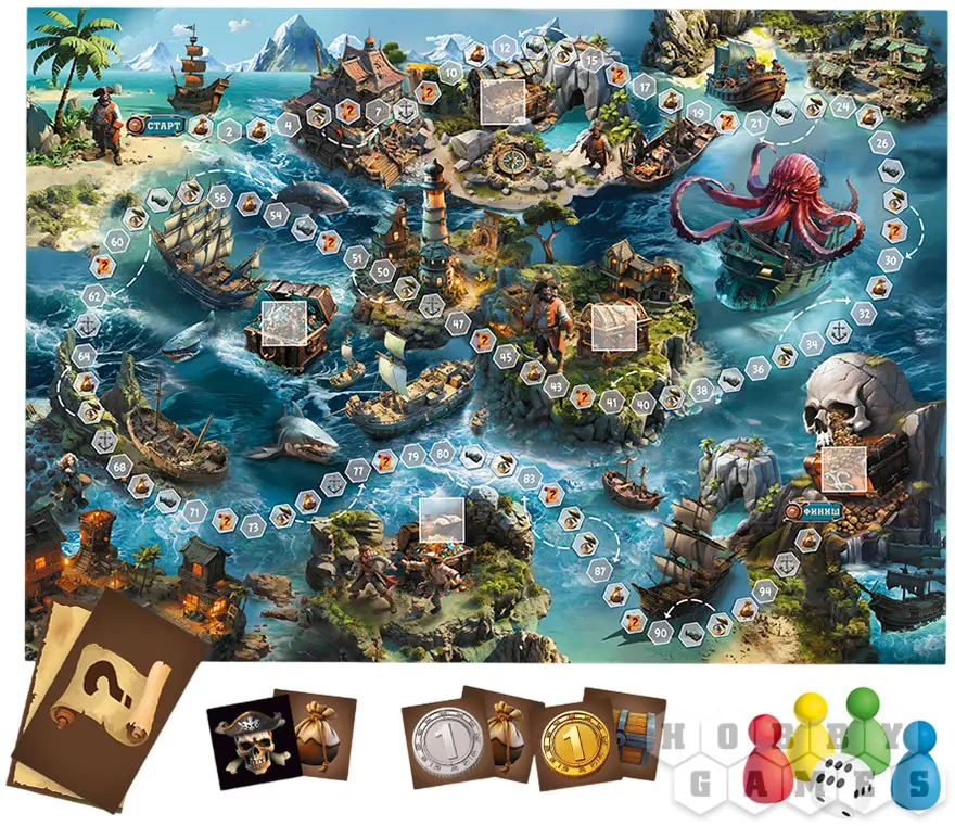 Вы слышите плеск волн и крик чаек? Это зов приключений! Вперёд, на поиски сокровищ! В настольной игре-ходилке "Тайна пиратского клада" вам предстоит бросить якорь в мире отважных капитанов, хитрых ловушек и таинственных монет. Здесь каждый ход – как новая волна: полна неожиданностей, веселья и сражений.