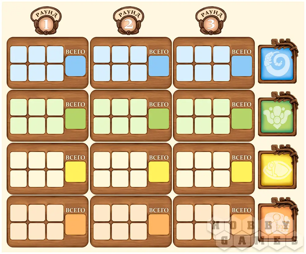 В конце игры сложите победные очки, которые вы набрали за 3 раунда. Игрок, набравший наибольшее количество очков, объявляется победителем!
