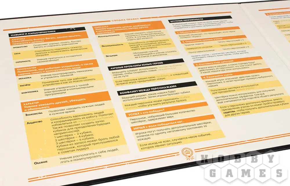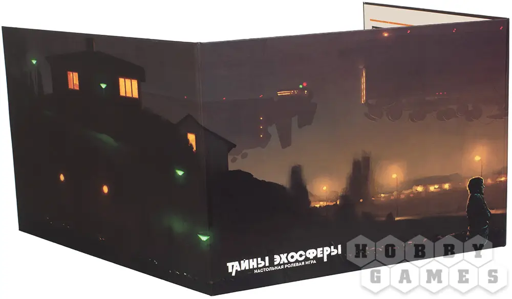 Какими простыми и логичными не были бы правила "Тайн Эхосферы", всю информацию в голове всё равно не удержишь. Сложнее всего ведущему – и тут на помощь приходит традиционный для ролевых игр аксессуар, ширма ведущего. На ширме в доступной и структурированной форме изложены основные принципы игры, структура приключения, правила создания сбалансированных и аутентичных предметов, а также другая полезная информация. На лицевой стороне ширмы нанесён атмосферный рисунок Столенхага.