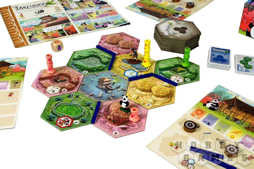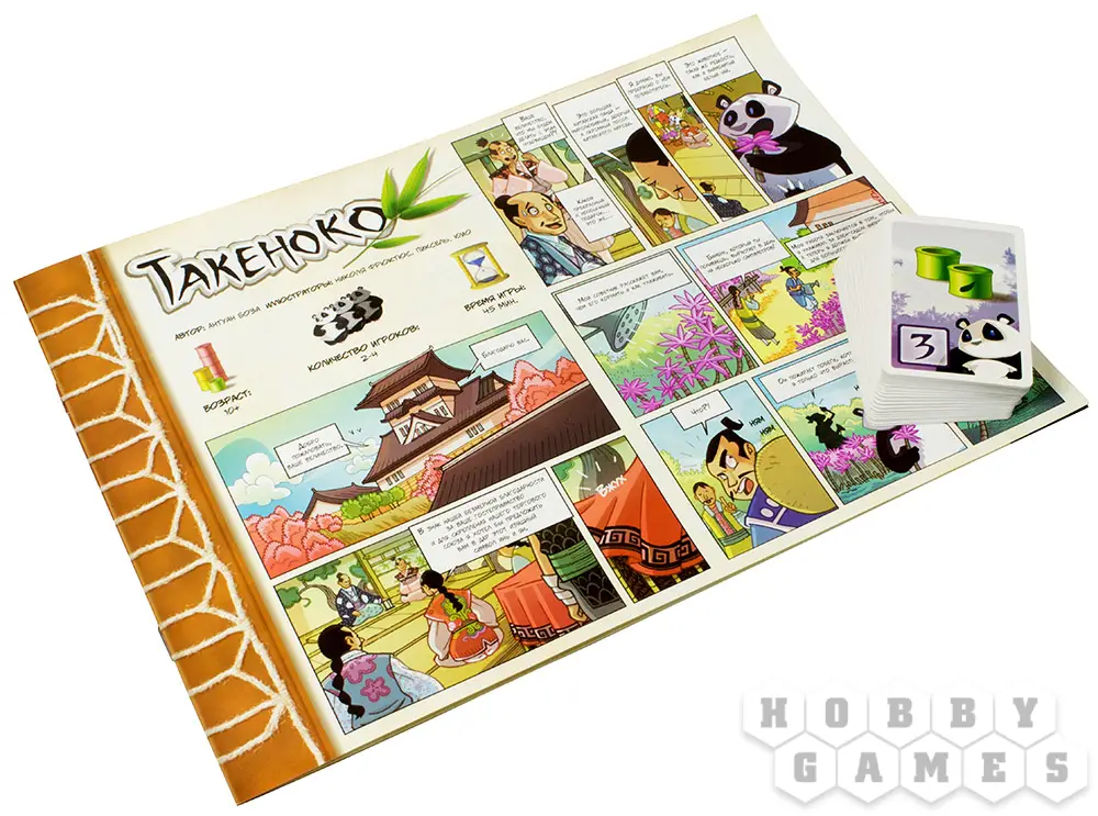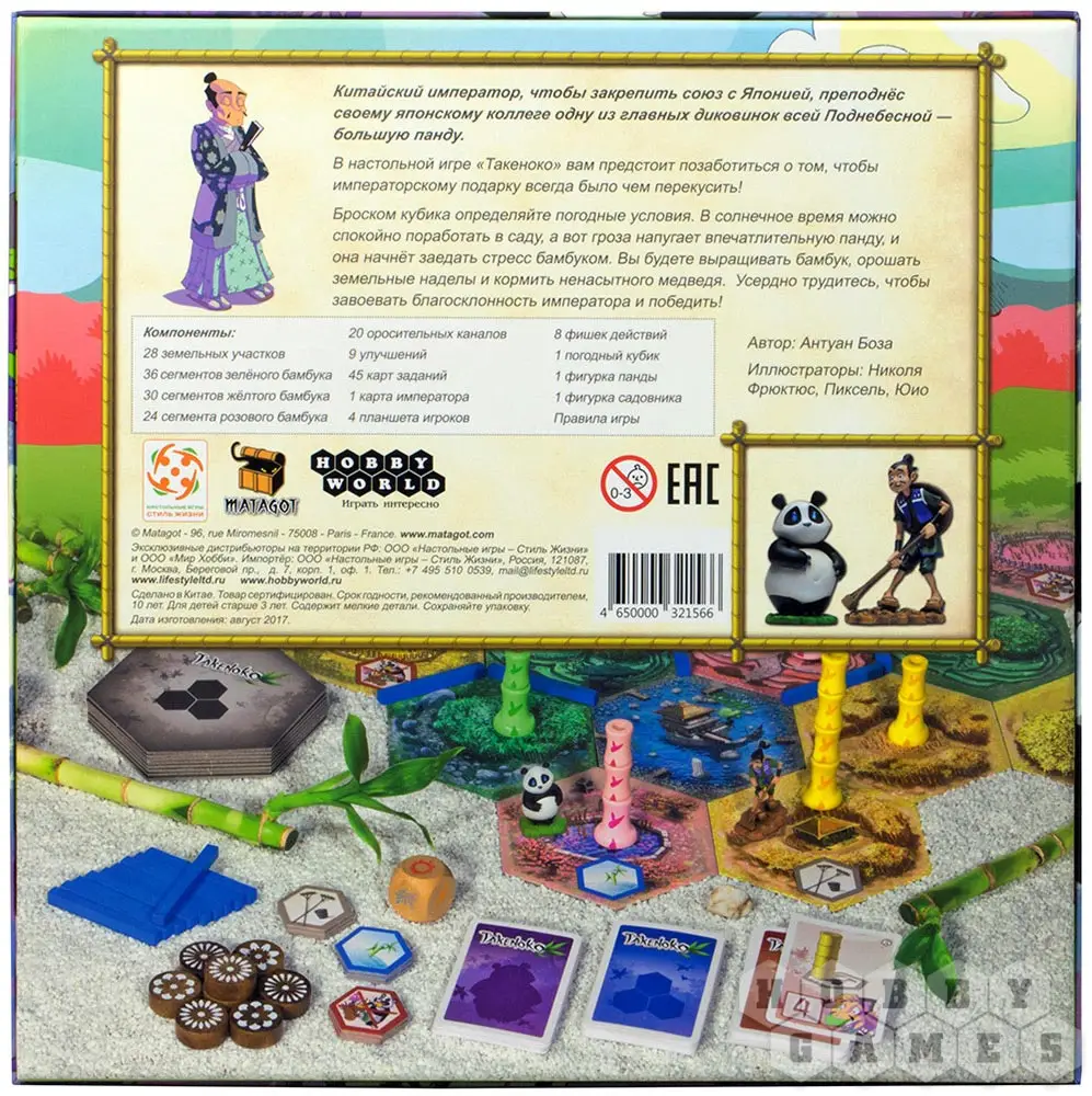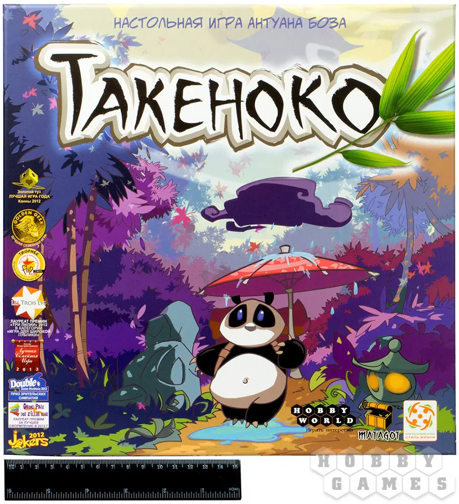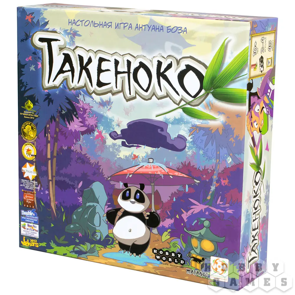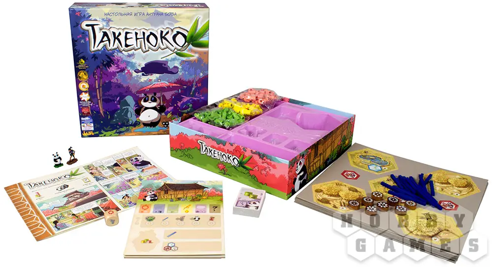 "Такеноко" – это милая семейная настольная игра про управление бамбуковым садом. Название игры можно перевести с японского, как "бамбуковый побег". Собственно, именно вокруг бамбука и будет строиться игра.