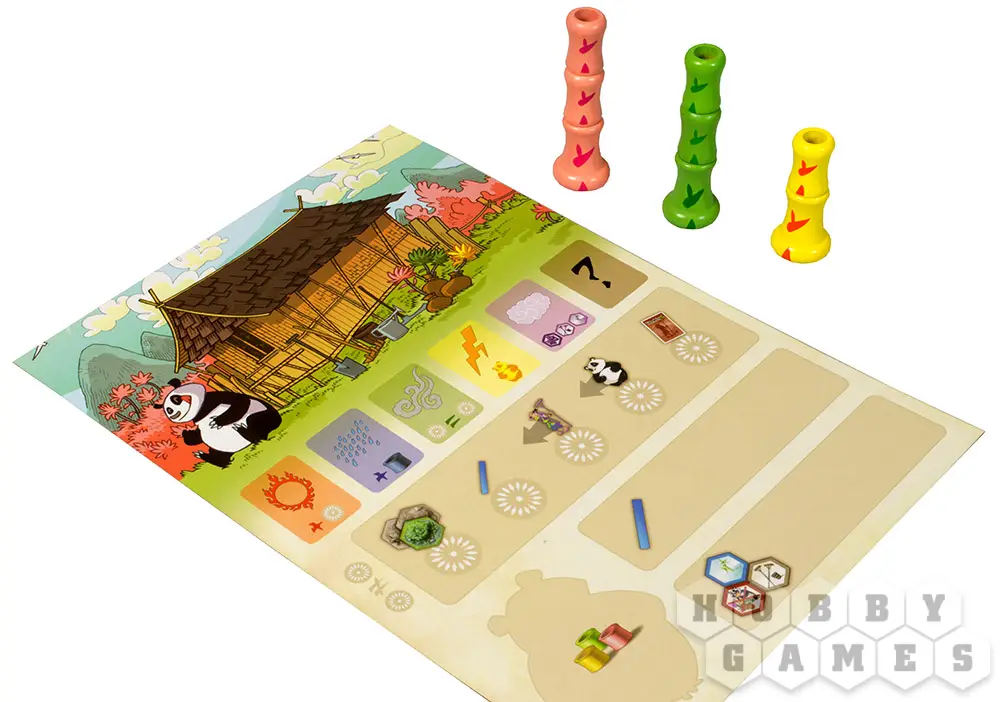 Внимание! В правилах игры может встретиться ошибка. Действие "Панда" позволяет вам передвинуть фигурку панды, которая затем поедает сегмент бамбука, а не взять три верхних участка. Если в ваших правилах изложен второй вариант, вы можете скачать исправленную версию на этой же странице, на вкладке "Правила" или обратиться в отдел поддержки покупателей Hobby World, чтобы получить их в бумажном виде.