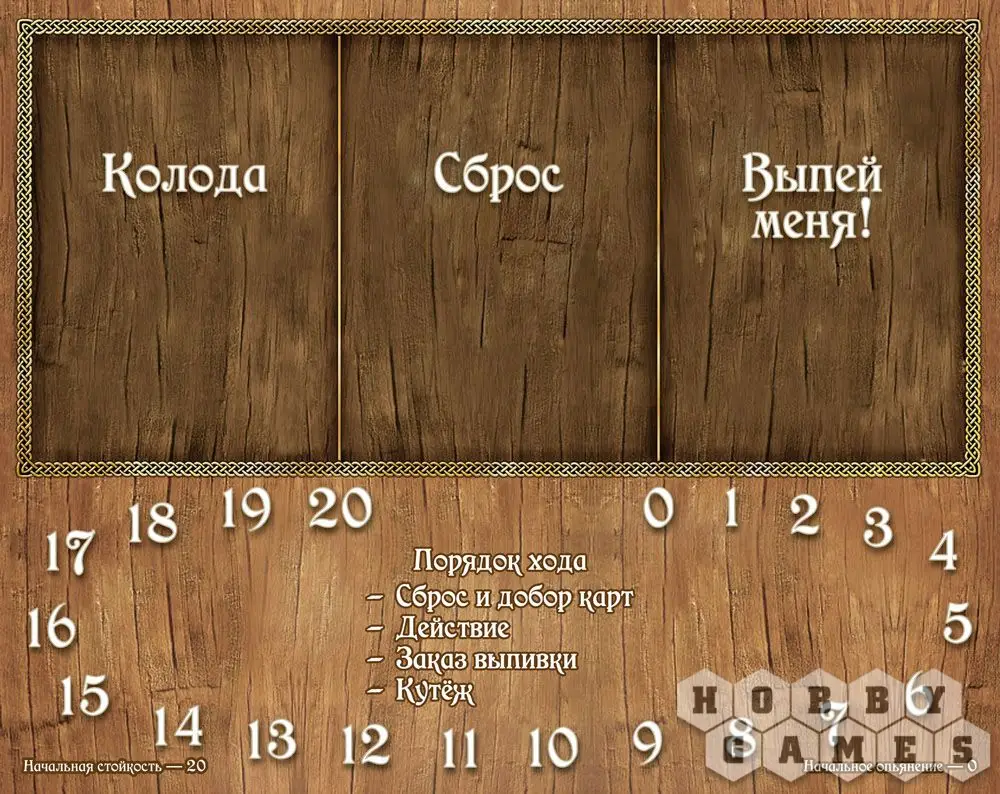 Правила игры достаточно просты и понятны, многие действия указаны на самих картах. Игроки ходят по очереди. Каждый игрок получает колоду персонажа из 40 карт, 10 золотых, помечает свою стойкость на значении "20", а своё опьянение на нулевом значении, а также берёт семь верхних карт в руку.