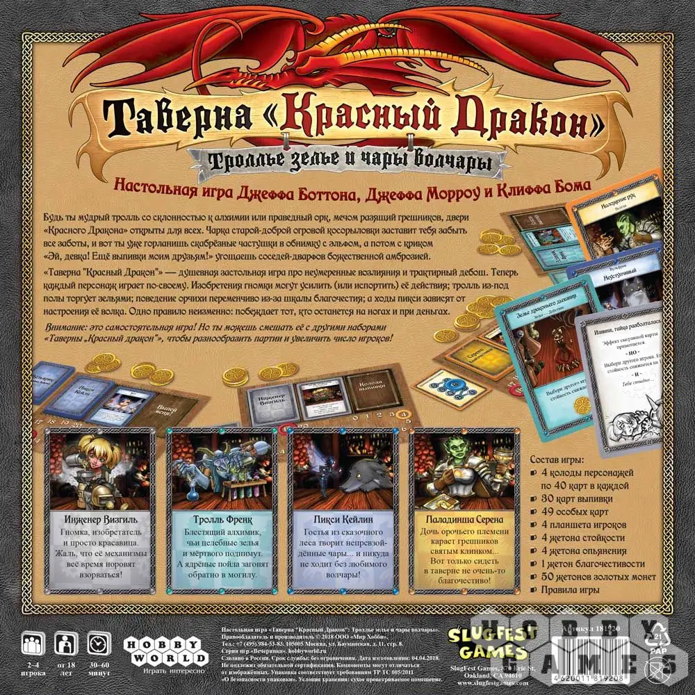 Внимание: это самостоятельная игра! Но Вы можете смешать её с другими наборами "Таверны Красный дракон", чтобы разнообразить партии и увеличить число игроков!