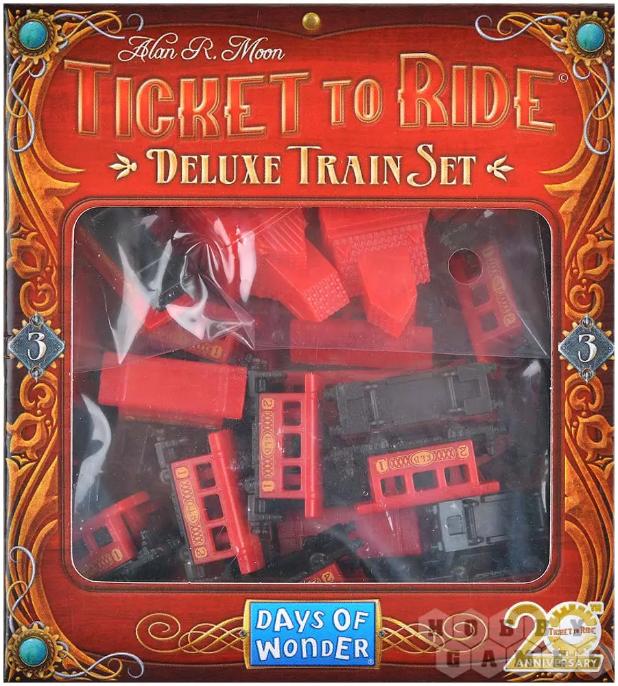 Представляем вашему вниманию делюкс-набор с тремя станциями, маркером подсчёта очков и изящными вагончиками красного цвета. Цвет был выбран неслучайно: именно с красными поездами связаны яркие детские воспоминания одного из дизайнеров серии. А ещё в набор входит небольшое пасхальное яйцо – отсылка к фильму, который нежно любят разработчики.
