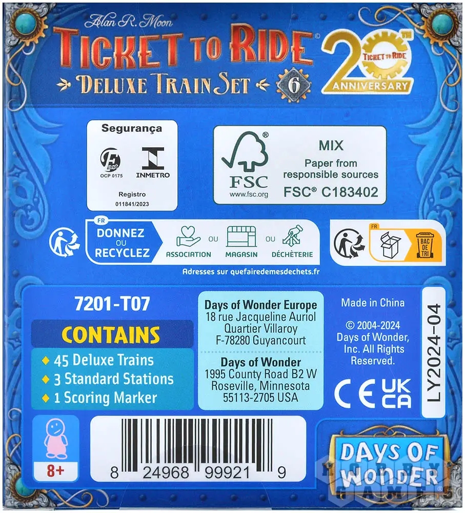 Делюкс-набор совместим почти со всеми версиями серии Ticket to Ride, кроме: Ticket to Ride: First Journey, Ticket to Ride: Rails and Sails, "Ticket to Ride. Наследие: Легенды Запада" и юбилейных изданий.