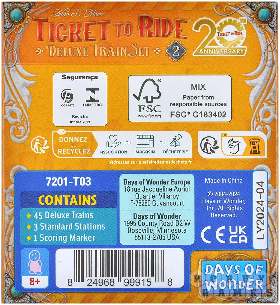 Делюкс-набор совместим почти со всеми версиями серии Ticket to Ride, кроме: Ticket to Ride: First Journey, Ticket to Ride: Rails and Sails, "Ticket to Ride. Наследие: Легенды Запада" и юбилейных изданий.