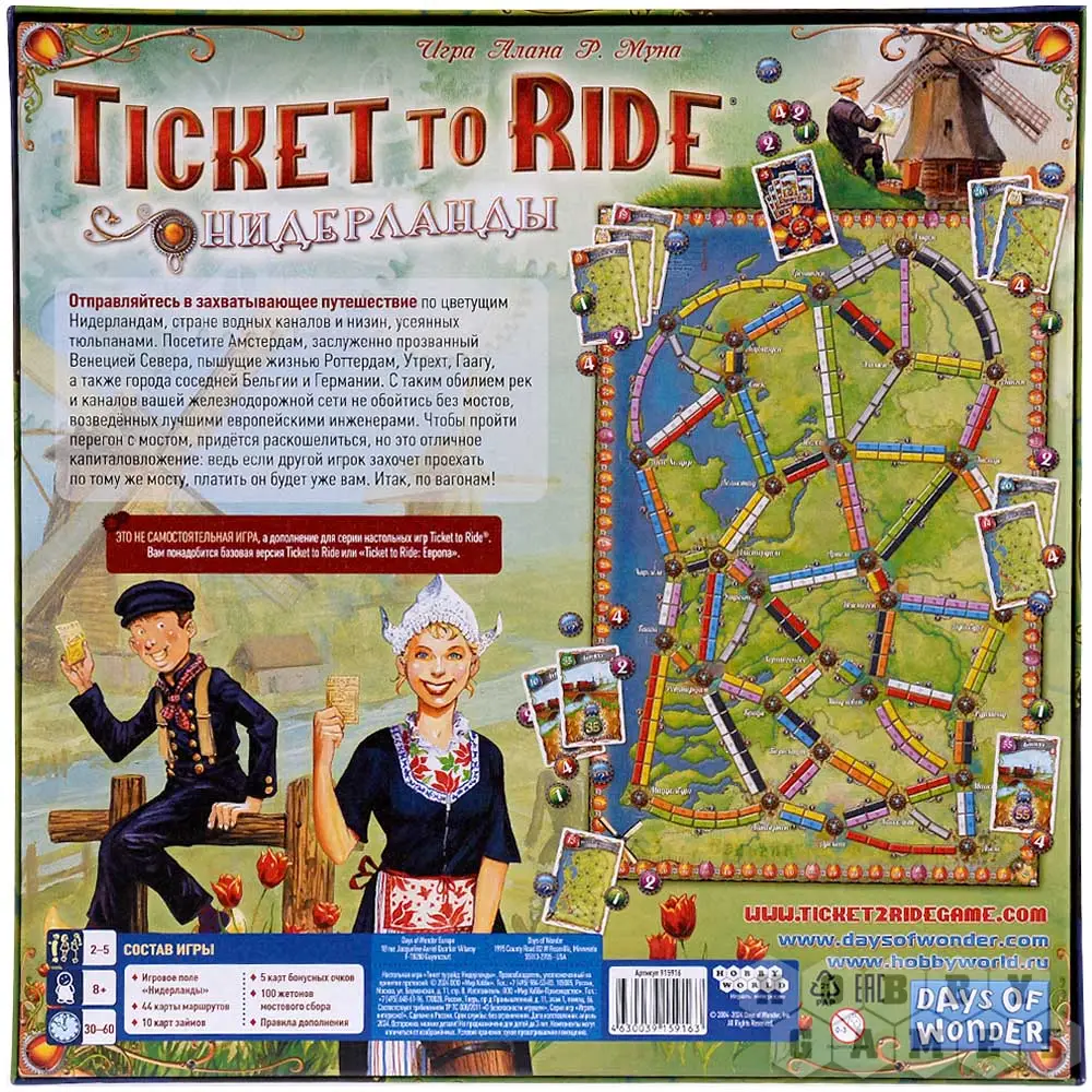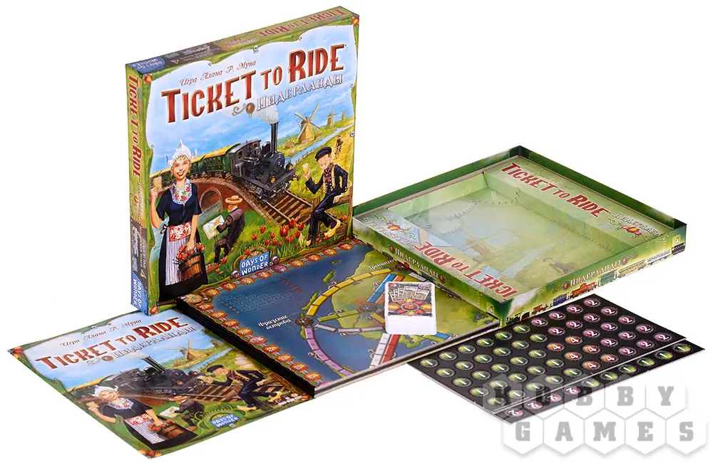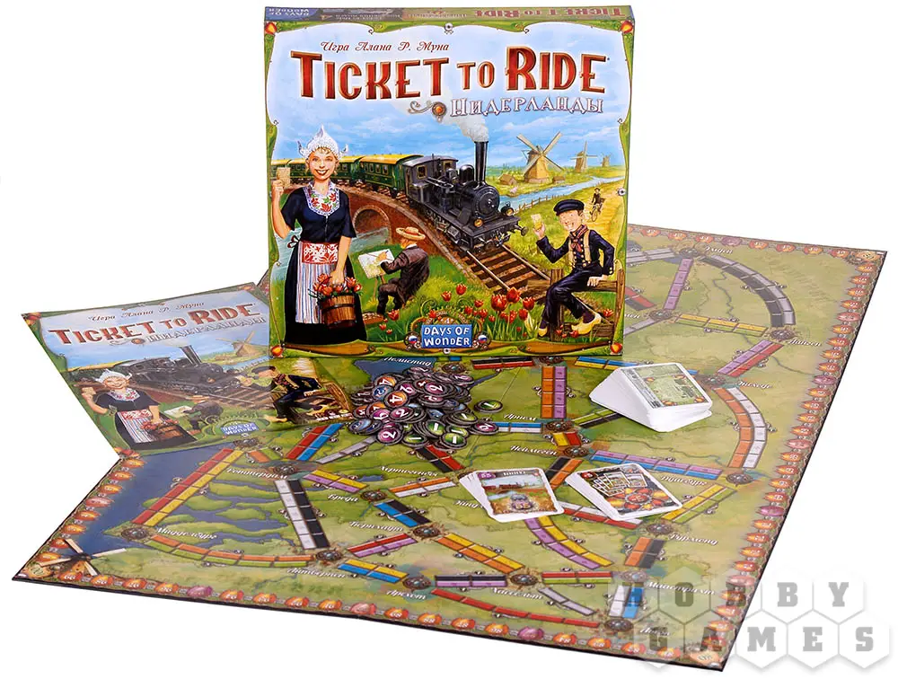 Дополнение "Ticket to Ride: Нидерланды" отправит вас в приключение по стране ярких полей тюльпанов. Проложите свои маршруты через Амстердам, так же известный как Венеция Севера, динамичные Утрехт и Роттердам, а также изысканную Гаагу. Но одними Нидерландами дело не ограничится: у вас есть возможность посетить очаровательные города и соседних стран – Германии и Бельгии.
