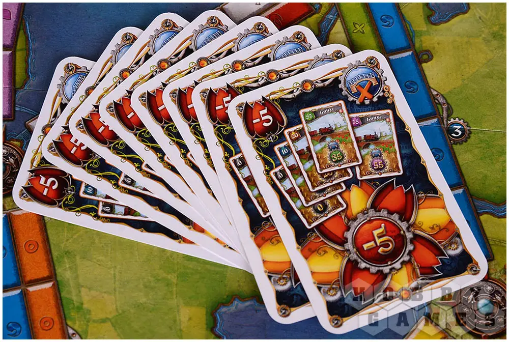 Когда поезда одного из игроков подходят к концу, игра объявляется завершённой. Все игроки открывают свои скрытые маршруты и считают набранные очки. Если задание, указанное на карте маршрута выполнено, то очки прибавляются, а если провалено – то наоборот. И, главное, игрок, проложивший самый длинный маршрут, получает дополнительные десять очков!