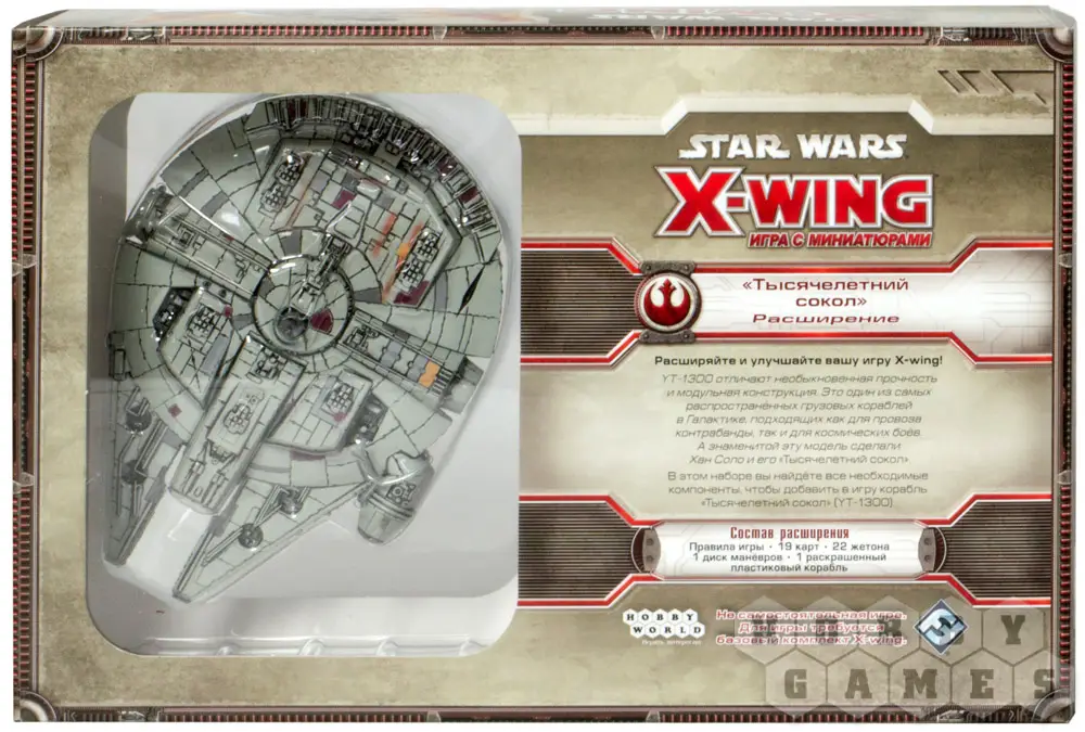«Тысячелетний сокол» — один из ключевых кораблей оригинальной трилогии фильмов, поэтому дизайнеры «X-wing» поставили перед собой задачу сделать так, чтобы игроки получили максимальное удовольствие от игры с этой моделью. Благодаря уникальными правилам, специальным модификациям и десятку апгрейдов (в их числе вторые пилоты и стрелки), «Тысячелетний сокол» получился самым гибко настраиваемым кораблем игры. Каждый игрок может собрать себе YT-1300 по душе.