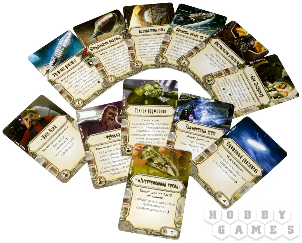 Еще один новый тип улучшений, который привносит в игру YT-1300, — карты модификаций. Модификации — уникальные апгрейды, которые подходят любому кораблю (если в тексте карты нет никаких ограничений на тип корабля).