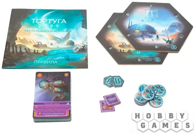 "Бухта разбитых кораблей" – это дополнение для отечественной настольной стратегии "Тортуга 2199", посвящённой космическим пиратам и борьбе за влияние на мятежной шахтёрской планете. С "Бухтами разбитых кораблей" в игре одновременно сможет участвовать пять человек, т.е. на одного больше, чем в базовом издании. Кроме этого, повышается уровень взаимодействия между игроками, а игровой процесс становится вариативнее и увлекательнее. Теперь у вас будет возможность установки новых секторов, "Хаба" и "Бухты разбитых кораблей", вместе с которыми в игре появляются новые механики и возможности. С дополнением вы сможете покупать и устанавливать мины, а также использовать псиоников в охоте – что придётся очень кстати в новом сценарии "Охотники на чудовищ". Откройте для себя новые грани Тортуги!
