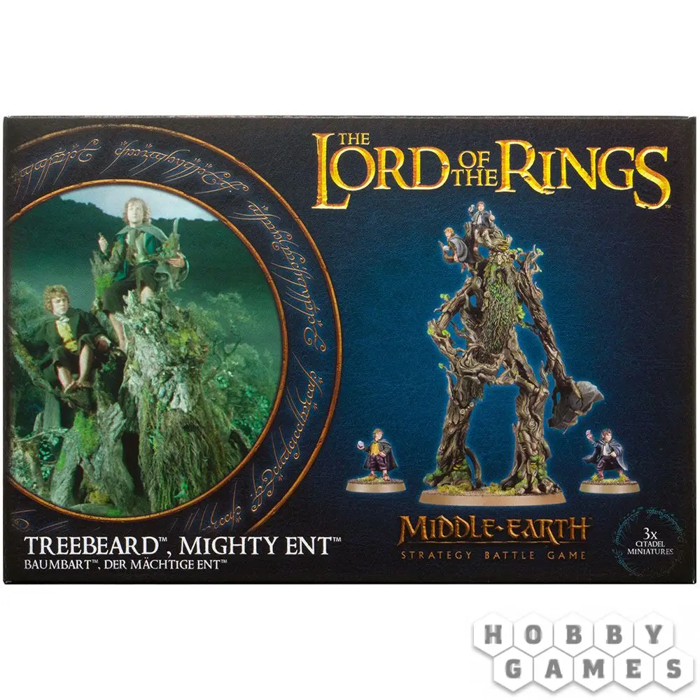 Древобород – это лидер войска Фангорна, способный и самостоятельно крушить врагов на поле боя, и позвать на помощь хоббитов, как он сделал, будучи во главе Последнего Похода Энтов. Вы можете разместить модели хоббитов на ветвях этого могучего создания. Также Мерри и Пиппин имеют отдельные модели, на которых они изображены преисполненными сил от живительного напитка энтов!