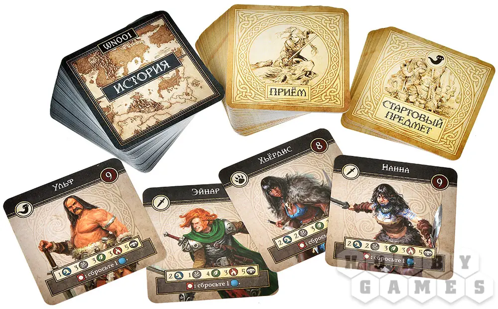 В первую фазу каждый герой может отправиться в соседние земли, чтобы исследовать их. Тут надо быть осторожным: если в покидаемом регионе есть враги, не относящиеся к ориентиру, они наносят герою по одному урону. Куда отправиться? Это вам будет подсказывать книга саг. А каким маршрутом добираться до конечной точки, решать уже вам: пойдёте ли вы из Эйдленда в Дикоземье напрямик сквозь Ледяную гряду, или решите обогнуть горы на корабле через Мрачное море?