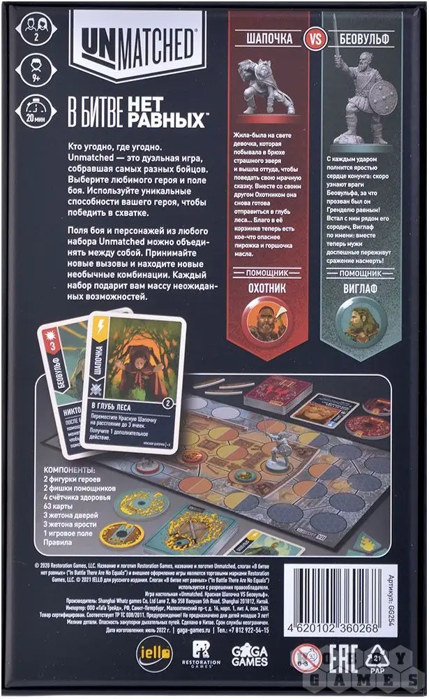 Нашумевшая серия Unmatched возвращается с новым набором и двумя новыми героями! Красная Шапочка способна дополнительные преимущества, если будет разыгрывать карты определённым образом – впрочем, если не рассчитать действия достаточно грамотно, быстро станут явными её недостатки: слабая выносливость и отсутствие мощных атак.