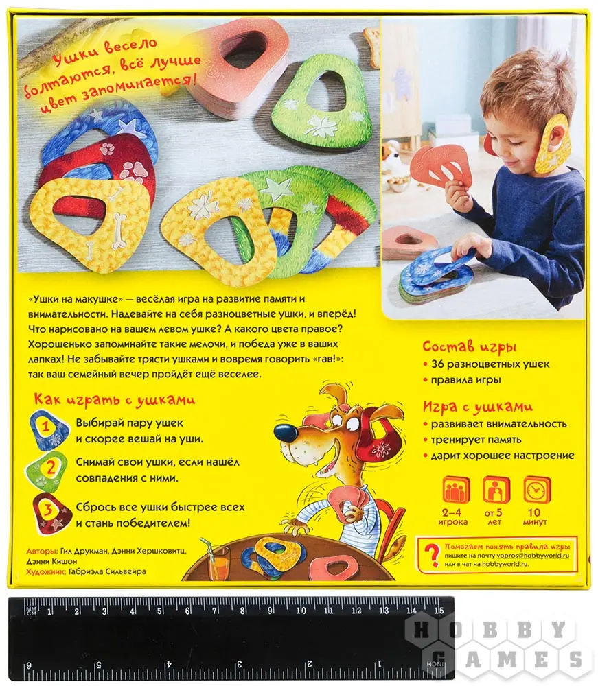 "Ушки на макушке" – это очень доступная и динамичная игра для самых маленьких любителей настольных игр, нацеленная на развитие внимательности и зрительной памяти. В игре крайне простые для освоения правила и весёлый игровой процесс, который подарит много часов радости вашим семьям!
