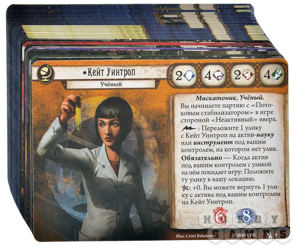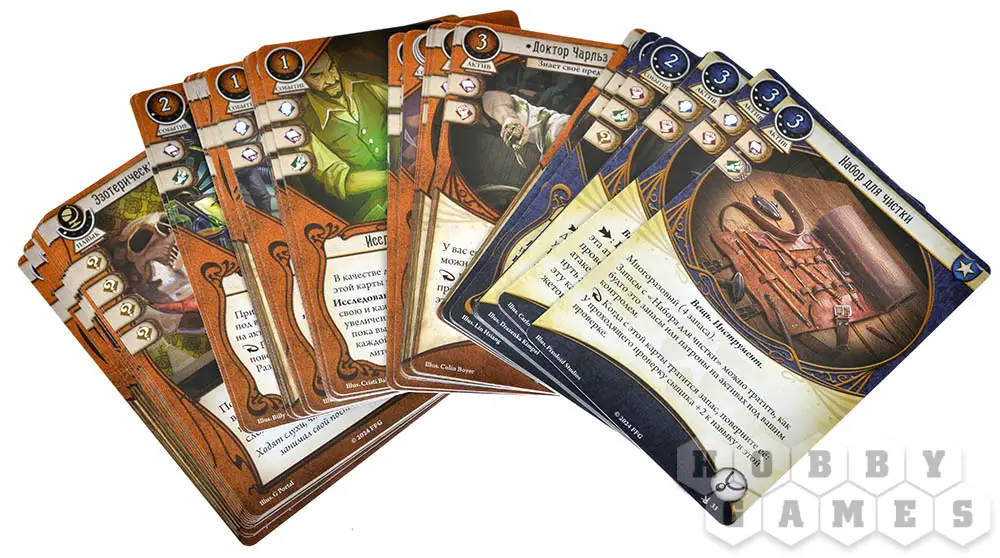 Игроки управляют действиями персонажей посредством своей колоды сыщика. Сценарии ведут кампании, предлагая интереснейшее приключение.