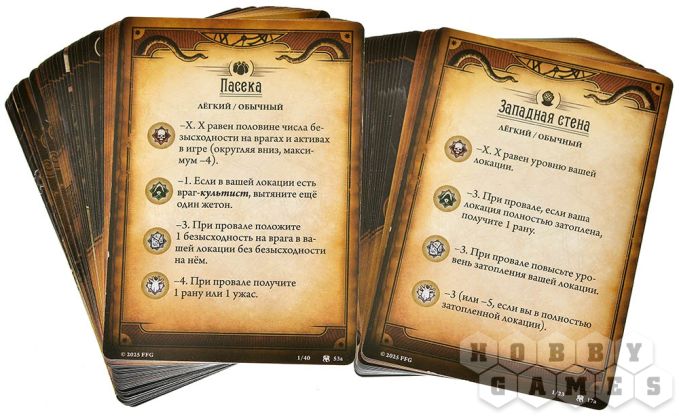 Игроки управляют действиями персонажей посредством своей колоды сыщика. Сценарии ведут кампании, предлагая интереснейшее приключение.