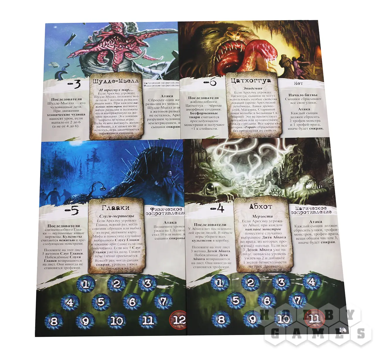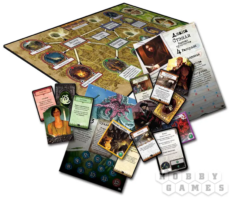 «Ужас Аркхэма» – настольная игра, которая погрузит вас в удивительный и пугающий мир, созданный по мотивам мифов писателя Г. Ф. Лавкрафта. Игроки пробуют себя в роли исследователей, им предстоит расследовать жуткие происшествия в Аркхэме, городе штата Массачусетс. В этом злополучном городе открываются врата в другие миры. Если появляется слишком много врат, то в Аркхэм приходит один из Древних, ужасных монстров, и игроки, чтобы не допустить разрушения мира и воцарения этих враждебных существ, должны противостоять ему.
