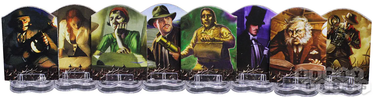 листы, жетоны и подставки для жетонов сыщиков (по 16 на каждый элемент);