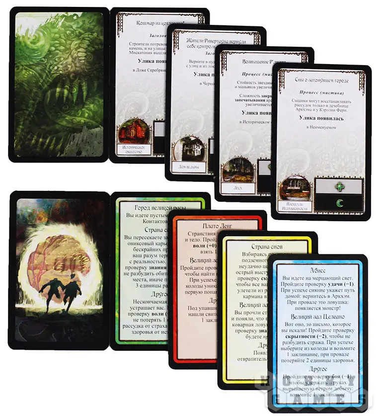 «Ужас Аркхэма» – командная игра, рассчитанная не более чем на 8 игроков. По сюжету перед Вами предстает американский город, в котором творится нечто, похожее на чертовщину. Вы – один из сыщиков, обитателей или гостей городка, точно знающих об этом или хотя бы о чем-то подозревающих. И каждый из Вас либо боится, что Вам не поверят и отправят в местное учреждение для умалишенных, либо действует, полагаясь на собственные силы. Однако без надежного тыла единомышленников в борьбе с монстрами не обойтись, поэтому понадобятся союзники. И не следует забывать о том, что с чудовищем не расправиться обычным оружием. Здесь нужно отыскать как можно больше магических заклинаний. В том числе и для того, чтобы закрывать врата в потусторонний мир.