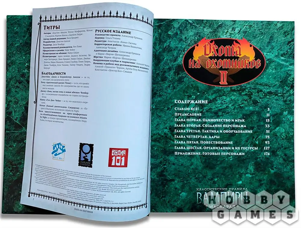 Книга "Охота на охотников" предлагает игрокам вступить в ряды охотников с нежитью и дать отпор Сородичам. Вы узнаете, при каких обстоятельствах становятся охотниками, и можно ли в этом случае рассчитывать на чью-либо помощь. Книга расскажет, как создать персонажа и наиболее эффективно бороться с Проклятыми, а также о сверхъестественных силах, с которыми наверняка придётся столкнуться, а может быть, даже получить их себе. Также вас ждёт подробный рассказ про организации, которые ведут битву в Мире Тьмы, можно ли в них вступить и какие плюсы и минусы ожидают их участников. Рассказчик, решивший провести игру, найдёт для себя всю необходимую информацию, плюс к этому, в приложении вы найдёте несколько готовых персонажей-охотников, выслеживающих Сородичей, а также различное охотничье снаряжение.