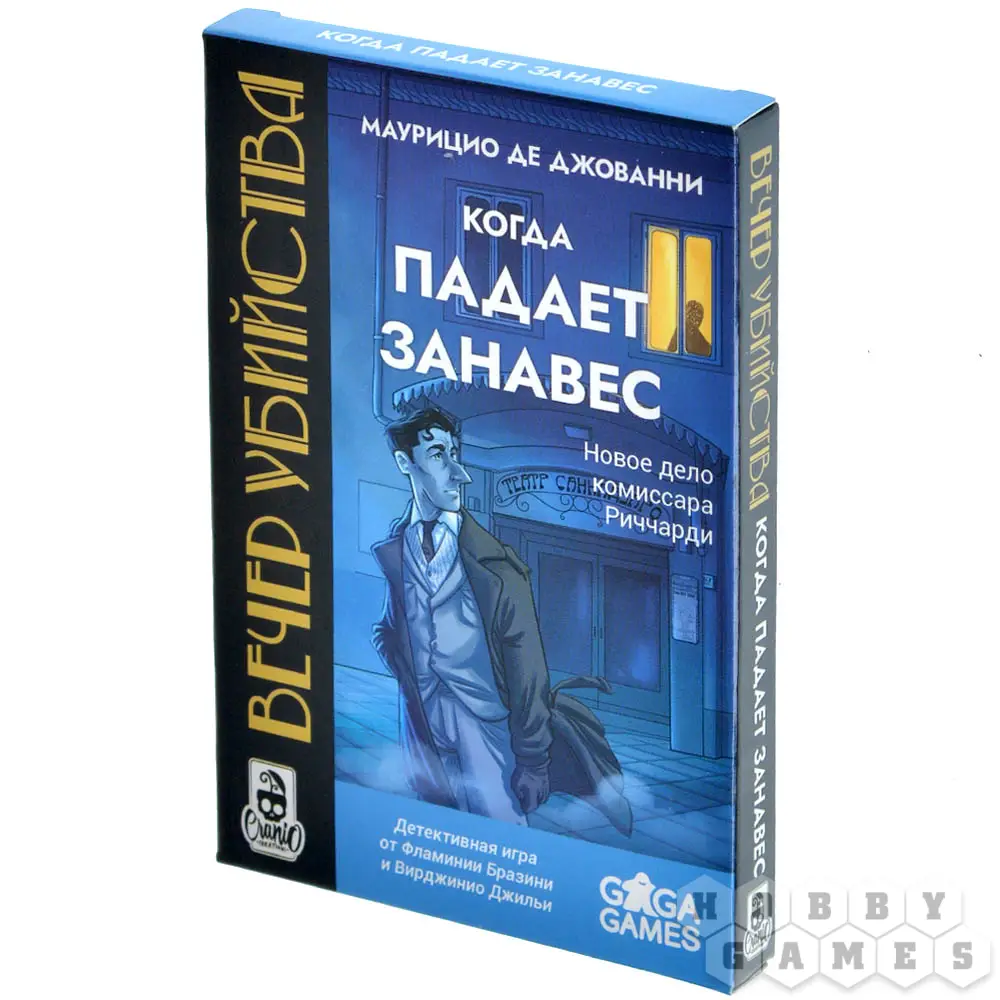 "Вечер убийства" – это захватывающая серия детективных карточных игр, вдохновлённая историями знаменитого итальянского писателя Маурицио Де Джованни о храбром Комиссаре Риччарди.