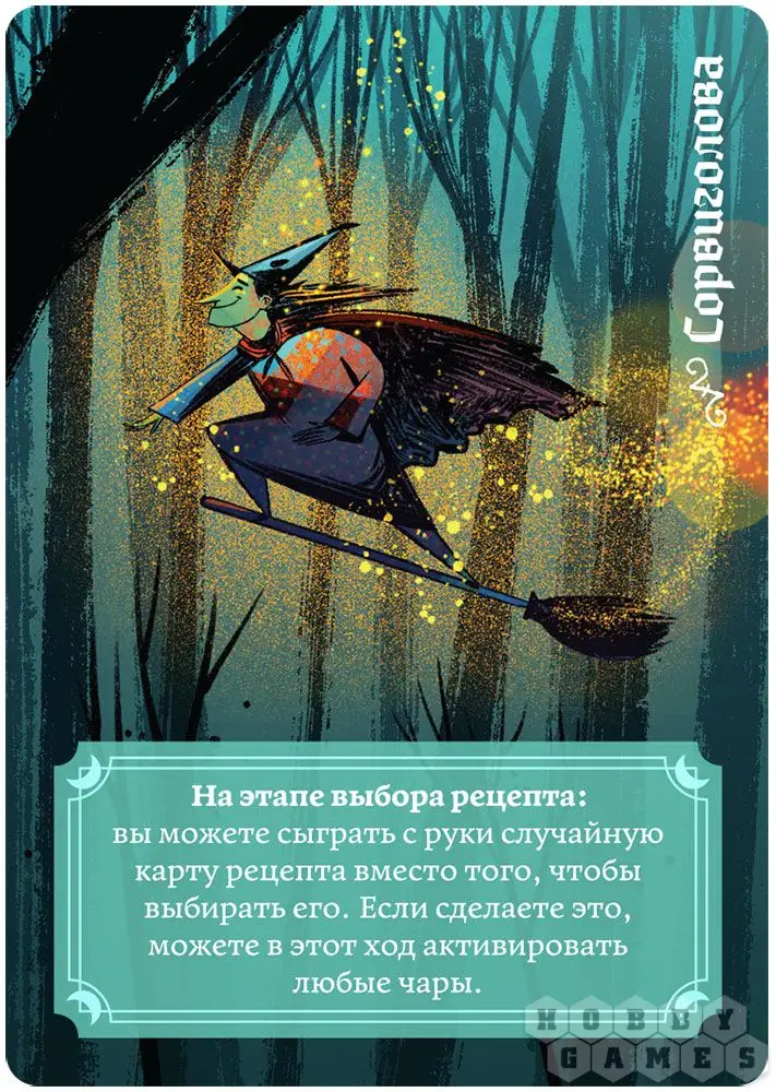 Один из главных аспектов игры – все выполняют действия одновременно! Для ведьмы всегда найдётся дело, а потому скучать в ожидании своей очереди точно не придётся. Игроки постоянно передают друг другу ресурсы и карты, так что крайне важно следить за развитием ситуации и вовремя увидеть выигрышную тактику. В круговороте магии, колдовских ингредиентов и рецептов зелий легко потерять голову – стоит зазеваться, и вот, соперницы уже вовсю портят ваше зелье!..