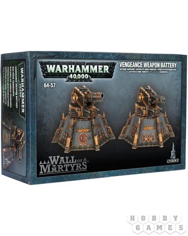 В наборе Орудийная Батарея “Мщение” содержатся две отдельных установки, в качестве их оборудования можно использовать боевые пушки или орудия «Каратель». В комплекте поставляется по два вида каждого орудия. Дизайн данной Орудийной Батареи позволяет совместить ее с другими частями Стены Мучеников. Помимо этого, орудия из этого набора можно использовать с Редутом “Огненная Буря”, и наоборот.