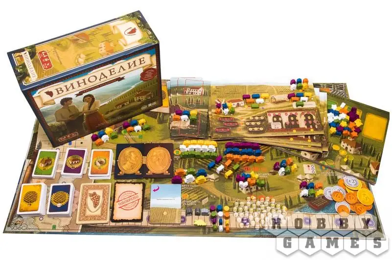 В настольной игре "Виноделие" игрокам предстоит взять под свой контроль небольшое поместье, расположенное в Тоскане. Шаг за шагом, двигаясь к процветанию и успеху, необходимо стать самым лучшим поставщиком этого винодельческого региона. Высаживайте молодую лозу, собирайте урожай. Создавайте своё фирменное вино, оформляйте заказы и пусть слава о Вашей винодельне летит по всей Италии!