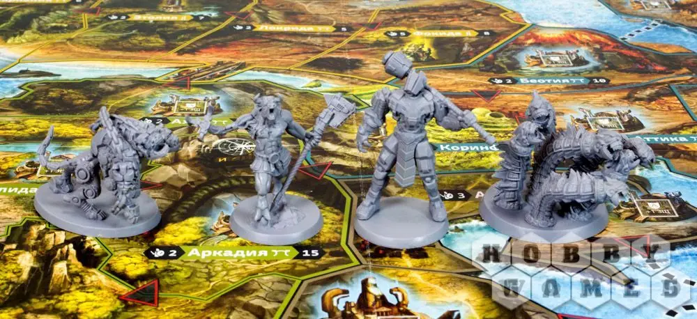 Вам доступны 4 варианта победы: контроль территорий, убийства чудовищ, а также строительство и контроль храмов. Все они обеспечивают стремительную и интересную партию для каждого игрока. До самого конца! Но самое важное – возможность строить величественные монументы богов. Отправляйте к ним жрецов, чтобы улучшить своего героя. Строительство храмов позволит получить карты благословений, дающих каждому герою уникальные особенности. В Вашем распоряжении множество стратегий, которые можно менять прямо во время увлекательной и ни на что не похожей игры.