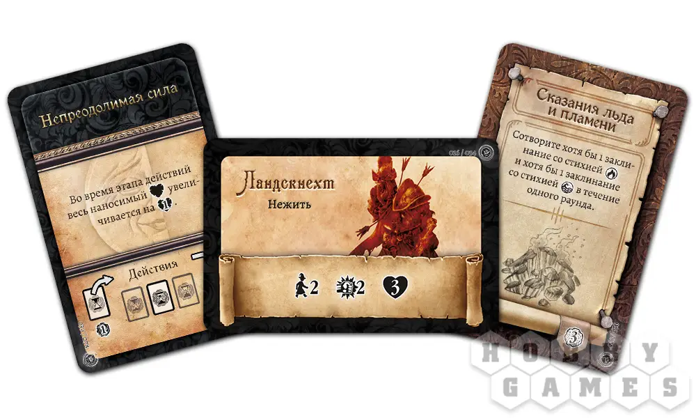 Размер карт: 119x69 мм (рекомендуются протекторы из данного раздела, 11 шт.)