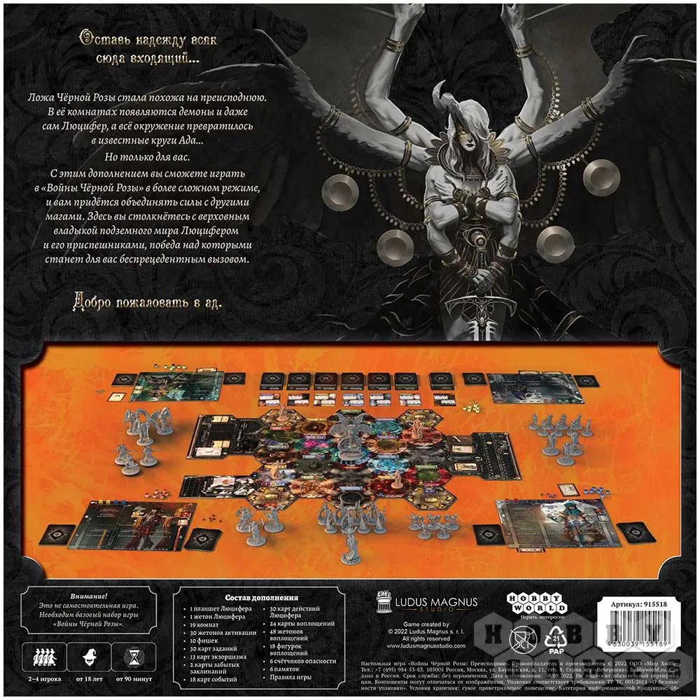 "Войны Чёрной Розы: Преисподняя" – это дополнение, которое привносит более сложный режим игры: теперь помимо противостояния другим претендентам на титул Магистра вам придётся бороться с самим владыкой преисподней и его приспешниками. Одолеть Люцифера будет непросто, но как известно, враг моего врага – мой друг, поэтому не стесняйтесь договариваться о временных союзах с другими магами, чтобы не попасть в трудные ситуации...
