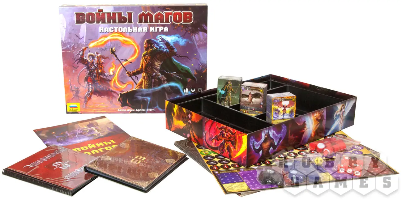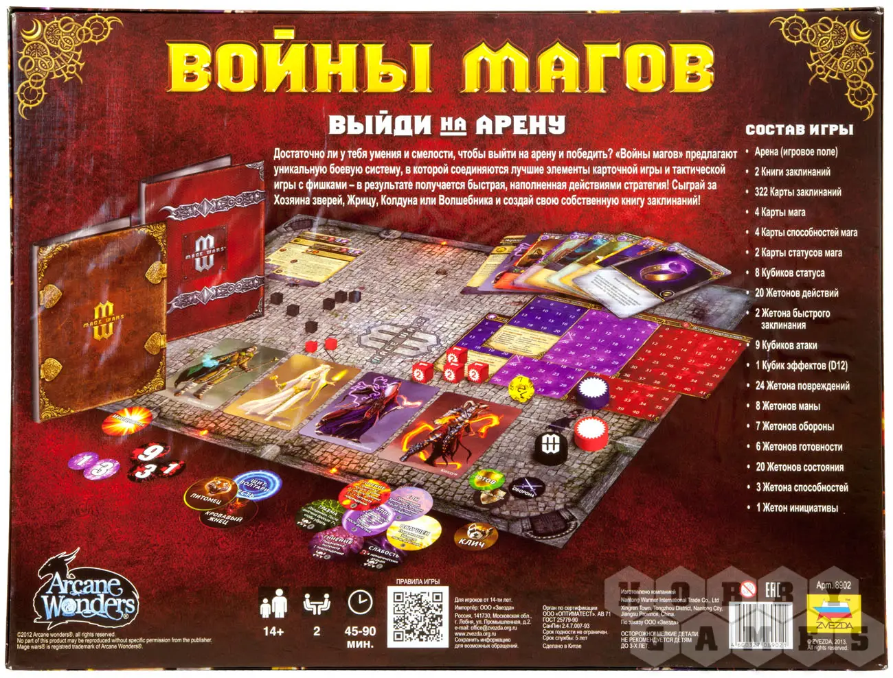 «Войны магов» — это дуэльная карточная настольная игра о магии и заклинаниях. Два представителя различных школ магии выходят на арену для того, чтобы определить, чьё же колдунство сильнее. В игре доступно четыре школы магии: Хозяева зверей изучают магию Природы и предпочитают призыв зверей и использование на них усиляющих чар; Жрицы предпочитают божественную магию Света, позволяющую лечить и защищать; Колдуны посвящают себя магии Тьмы, вызывая ужасных демонов и используя проклятия; Волшебники же, благодаря тайной магии, могут перенаправлять или отменять заклинания противников, вытягивать у них силы и тд.