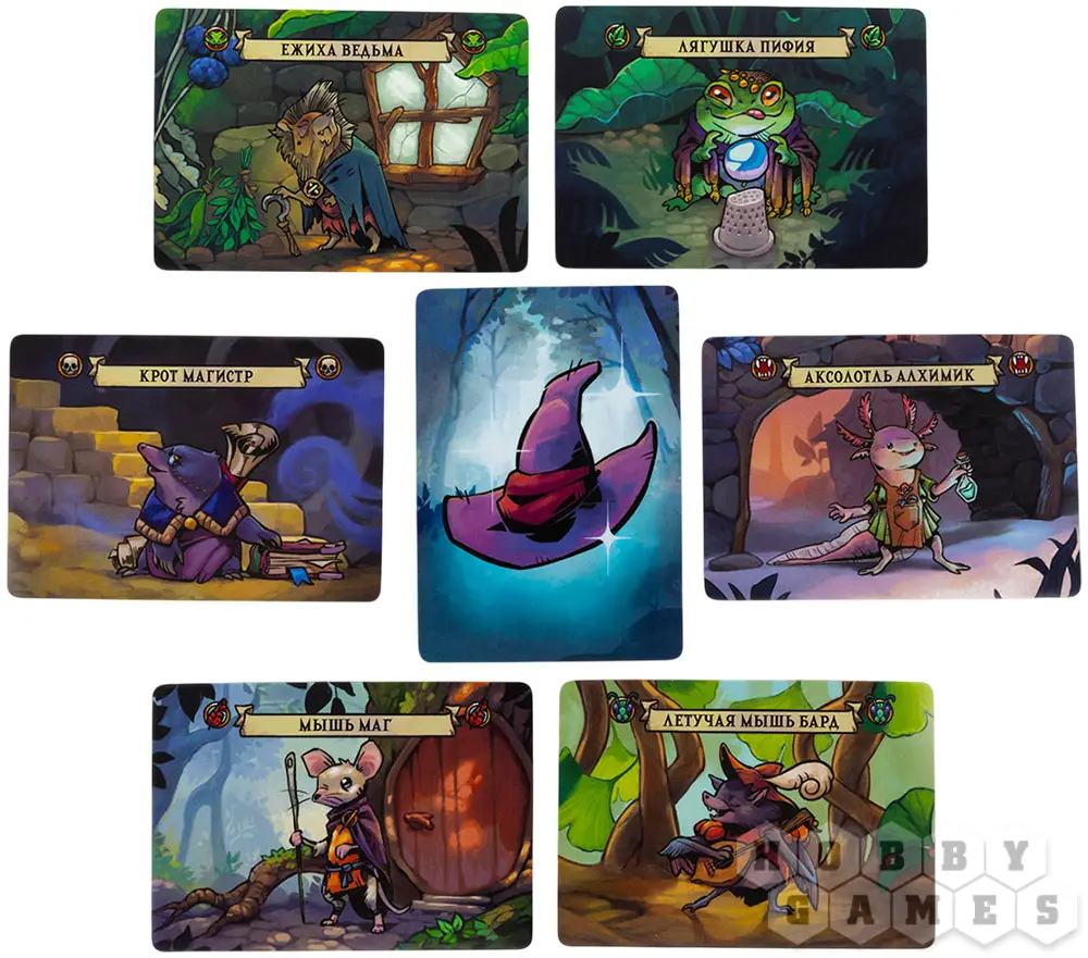 "Волшебники лесных чащоб" – динамичная соревновательная настолка, в которой вы примеряете роли лесных чародеев, стремящихся доказать своё мастерство. В вашем распоряжении – колода карт с уникальными существами, каждое из которых обладает силой и особыми эффектами. В каждом раунде вы будете призывать претендента – существо, которое сразится за звание чемпиона, а затем усиливать его с помощью дополнительных карт. Фазы поиска, призыва и усиления создают напряжённую и стратегическую борьбу, где важно не только набрать силу, но и перехитрить соперников. Игра предлагает множество вариантов развития событий благодаря разнообразию существ и их эффектов, а также отлично масштабируется: от двух до шести игроков в одной коробке и до двенадцати – при объединении двух наборов.