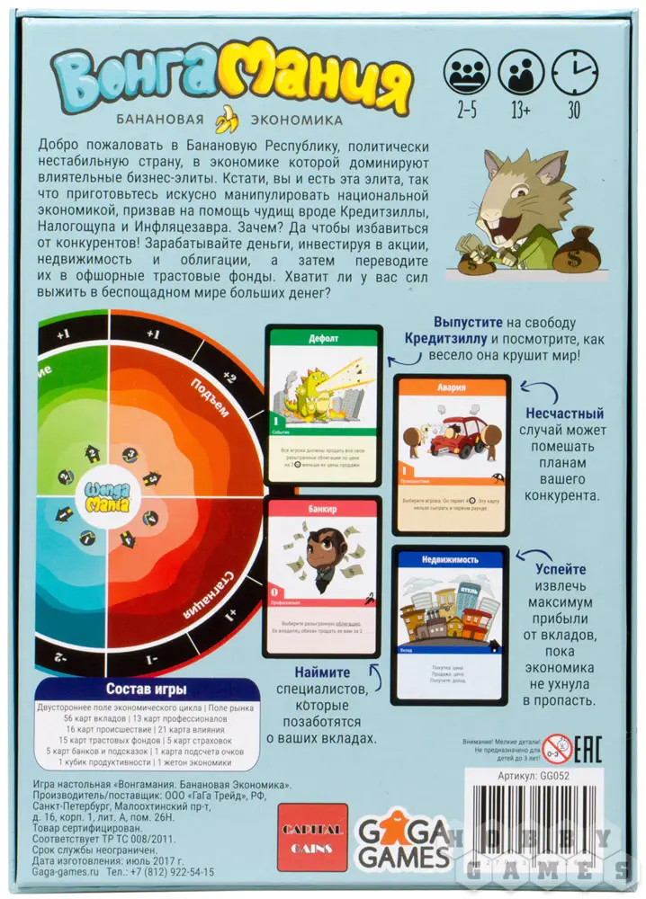 Взгляните на мир биржи изнутри! Представьте, что кто-то взял и переписал учебник по экономике в виде красочного комикса с понятным сюжетом и узнаваемыми героями. Эта игра - именно такая. Вам предстоит взять на себя роль финансиста, который хочет заполучить три трастовых фонда некоей Банановой Республики с цикличной экономикой.