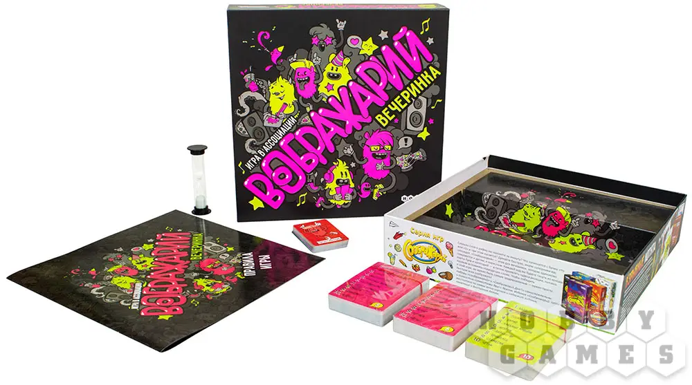 Многим полюбившаяся настольная игра "Воображарий" теперь вышла в новом формате "Воображарий: Вечеринка". Это игра в ассоциации, где каждый из игроков старается набрать наибольшее количество очков отгадывая или показывая указанные слова или словосочетания. С помощью этой игры вы сможете весело провести вечер с друзьями и близкими и узнать друг друга поближе. Теперь в игру добавляется новый способ объяснения слов или словосочетаний, описанных на 36 карточках "вечеринки". Играть в ассоциации теперь ещё веселее!