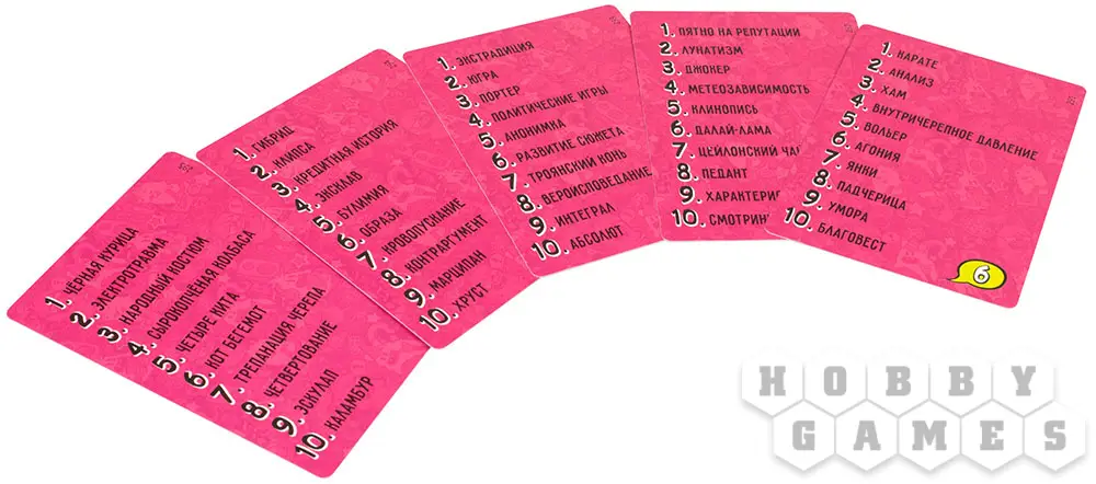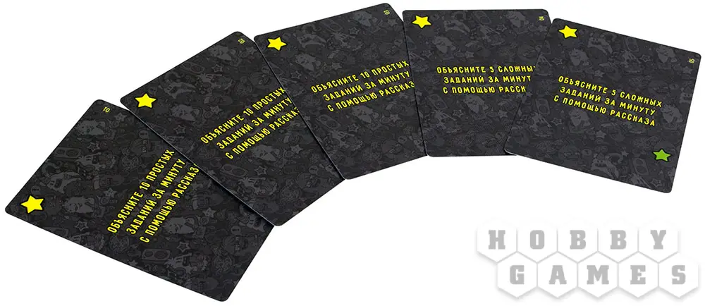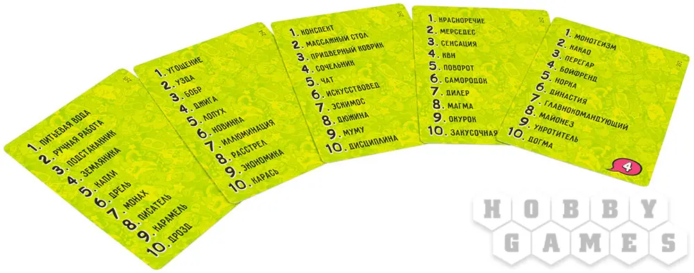 Перед началом партии игрокам предстоит решить, со словами какой сложности они будут играть. Если с простыми, то все карточки должны лежать синей стороной вниз, если со сложными словами, тогда красной стороной вниз. На каждой карточке, помимо десяти слов или словосочетаний, есть числовое обозначение – именно оно указывает, под каким номером будут объясняться слова. Игроки выбирают ведущего игрока на этот раунд, он вытягивает две карты из колоды, не показывая их другим игрокам, и по рубашке оставшейся верхней карты определяет номер задания. После ведущий выбирает доступный способ объяснения – рассказ, представление или вечеринка – и старается объяснить одно из вытянутых слов. После истечения времени или объяснения слова право ведущего передаётся игроку слева.