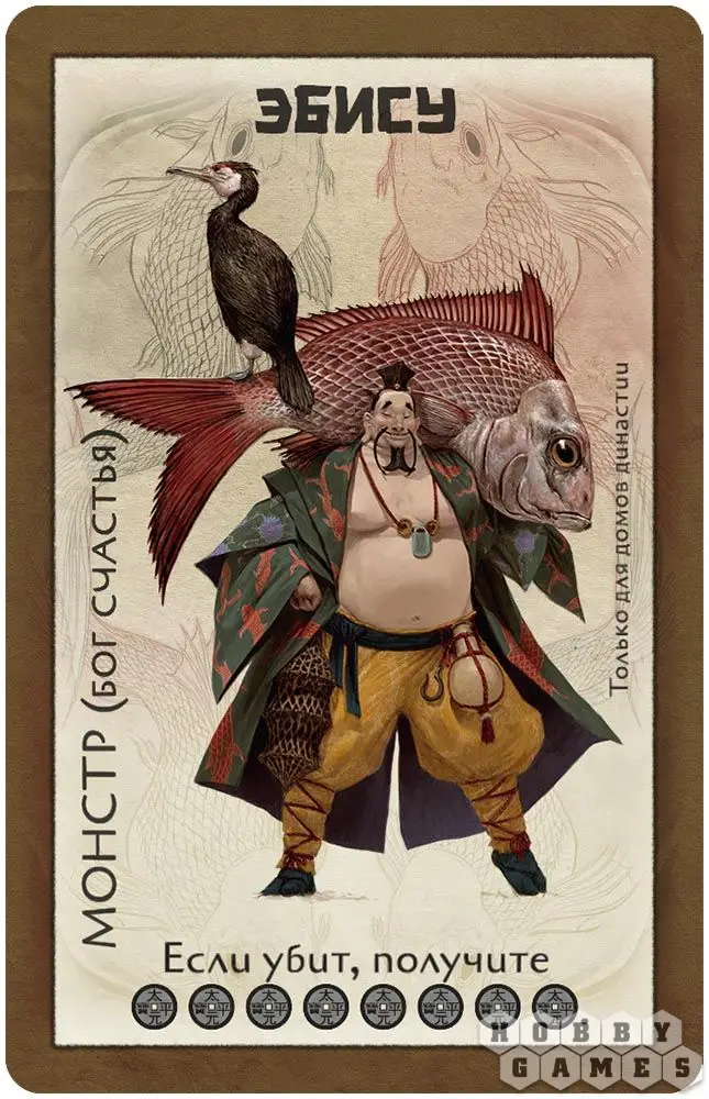 Боги счастья представлены семью миниатюрами. Карты богов счастья выкладываются рядом с картами сезона, но работают как карты монстров. Каждая обладает уникальным свойством, а приобретать её могут только дома династий