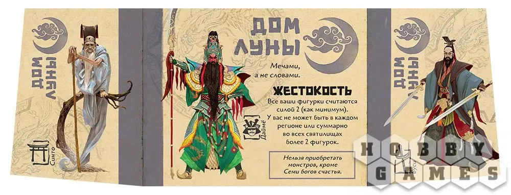 Два новых уникальных клана "Луны" и "Солнца", благодаря которым вы сможете играть вшестером! Каждый клан предлагает интересные механики и набор детализированных миниатюр, по десять штук на каждый дом. Кланы не могут подчинять своей воле местных монстров, но зато на их стороне семь богов счастья