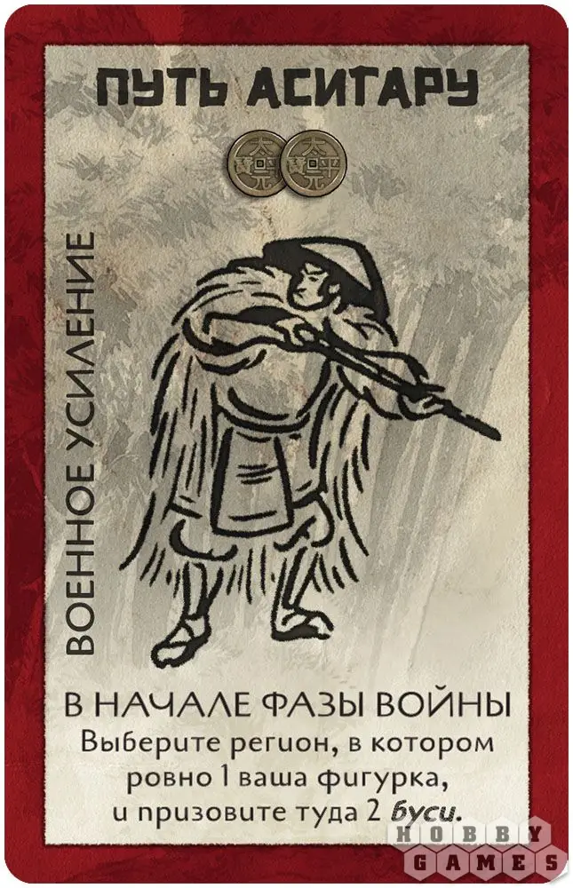 Вся игра длится три раунда, точнее, три сезона, а с приходом зимы партия завершается и побеждает игрок с наибольшим количеством победных очков. Очки можно зарабатывать множеством различных способов: очки даются за смерть воинов, взятие заложников, за захваты провинций, карты, храмы и многое другое. Проявите главные качества настоящего лидера, будьте мудрыми и рассудительными, заключайте выгодные соглашения, не забывайте про свою честь. Помните, что когда придёт время, только один Дом будет править Японией…