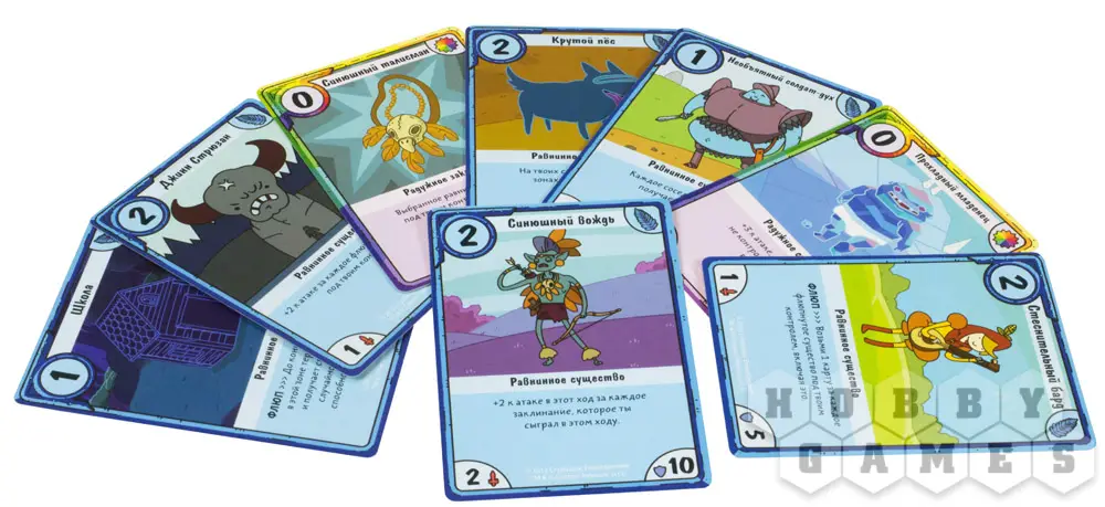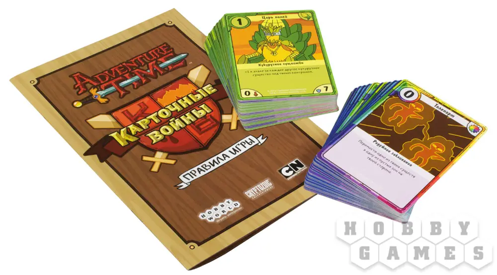 Данная карточная игра основана на вымышленной игре из самого сериала. Вспомните, нам неоднократно встречались сцены дуэлей Джейка и Финна! С помощью игры можно выяснить, кто здесь действительно крутой чел! Вам интересно, почему они так увлечённо рубились в неё? Теперь у вас есть возможность поменяться местами с главными героями и сразиться со своими товарищами! Среди карт вы наверняка узнаете многих персонажей мультфильма и даже более того, некоторые карты напрямую перенесены в настольный вариант игры напрямую из мультика, например, карты "Свинья" или "Зернотавр"!